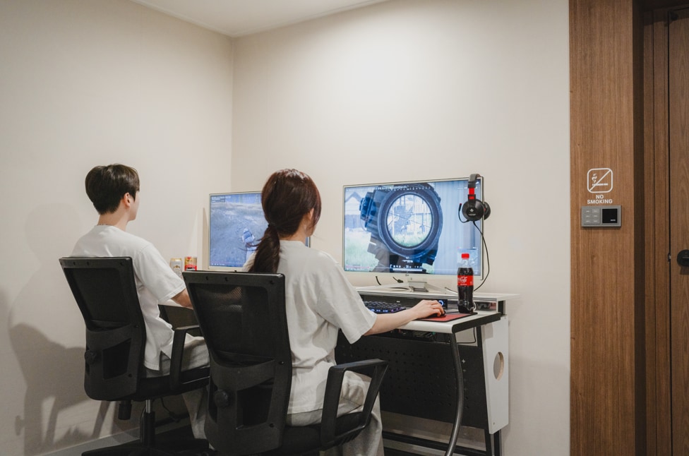 ํ์ฅ์คํ ์ด <๋ฌ๋ด>์ ์ธ๊ณ๋ฌธํ์ ์ฐ์ธ ์์ํ์ฑ ์ฑ๊ณฝ ์์ 2024๋ ์ ์ถํ 2์ธต์ ์๋ดํ ์ ํตํ์ฅ(๋ ์ฑ)์ ๋๋ค. 1์ธต์ ์ฃผ๋ฐฉ ๊ฒธ ๊ฑฐ์ค๊ณผ ๋ค์ค, ์์ค์ด ์๊ณ , 2์ธต์ ์นจ์ค ๊ฒธ ์์ฌ์ ํ์ฐ๋๋ฃธ, ๊ทธ๋ฆฌ๊ณ ๋ฌ๋จ๋ฝ์ด ์์ต๋๋ค. 1์ธต์ ์นดํ ์ปจ์ ์ผ๋ก ๋ฐํ ์ด๋ธ์์ ์ฐจ์ ์์ , ๋ํ์คํฌ๋ฆฐ์ผ๋ก ์ํ๋ฅผ ์ฆ๊ธฐ๊ฑฐ๋ ๋ค์ค์์ ๋ค๋์ฒดํ์ ํ ์ ์์ผ๋ฉฐ, 2์ธต์ ๋ถ์คํ ์ด ์ปจ์ ์ผ๋ก ์์ฌ์ฝ๋์์ ์ฑ ๊ณผ ๋ณด๋๊ฒ์์ ์ฆ๊ธธ ์ ์์ต๋๋ค. ๋ ๋ฌ๋จ๋ฝ์ ์์ ์ฑ์๋ณผ ๋ช ์์ ํ๊ฑฐ๋ ์ํ์ฐฝ์ผ๋ก ํ๋ฌ์ฐ ์์ฅ๋๋ฅผ ๋ฐ๋ผ๋ณด๋ฉฐ ๋ญ๋ง์ ๋ถ์๊ธฐ๋ฅผ ๋ง๋ฝํ ์ ์์ต๋๋ค. ํ์ฅ <๋ฌ๋ด>์ ์์ ๊ณต๊ฐ์ ํน์์ ์ด๋ ค ์นดํ&๊ฐค๋ฌ๋ฆฌ์ ๊ฐ์ ๋ณตํฉ๋ฌธํ๊ณต๊ฐ์ผ๋ก ๊พธ๋ช์ต๋๋ค. ์ฐจ๋ฅผ ๋ง์๋ฉฐ ๋ด์๋ ๋๋์๊ณ , ์ ํต๋์ด๋ ๋ณด๋๊ฒ์์ ํ๋ฉฐ ์ฌ๋ฏธ์๊ฒ ์ํตํ๋ ์๊ฐ์ ๊ฐ์ ธ๋ณด์ธ์. ์ฌ๋ฌ๋ถ์ ํธ์ํ ํด์์ ์ํด ์ต๊ณ ๊ธ ์นํ๊ฒฝ ํญ๊ท ์นจ๊ตฌ๋ฅผ ์ค๋นํ์ต๋๋ค. ์จ๋๋ฐฉ์์ ์์ํ ์ํฅ๊ธฐ๋ฅผ ๋งก์ผ๋ฉฐ ํธ์ํ ์์นจ์ ๋ง์ดํ์๊ธธ ๋ฐ๋๋๋ค.