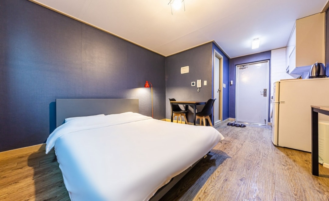 해당숙소는 수원역 인근에 자리한 도보로 방문 가능한 신축급 68객실 규모의 원룸형 레지던스 입니다. 원룸의 취사(하이라이트+씽크대)와 세탁기 냉장고(냉동냉장기능)가 있어 풀옵션 원룸같은 시설에 숙박업소의 룸 클리닝 서비스가 결합된 레지던스 숙소입니다. 객실 내 취사가 가능(조리도구 필요 시 사전 요청)합니다. 룸 내 개별 와이파이, 하이라이트, 씽크대 , 에어컨, 냉장고, 세탁기, 커피포트 책상, 의자2, 침대 등이 모두 구비되어 있습니다. 꼼꼼한 객실 관리로 청결한 룸 컨디션을 제공 합니다! 게스트는 사용하는 동안 개인 룸 사용을 하게 됩니다. ^^ 만약, 예약을 원하시는 룸이 자리가 없다면 메시지 문의 주시기 바랍니다! 감사합니다.