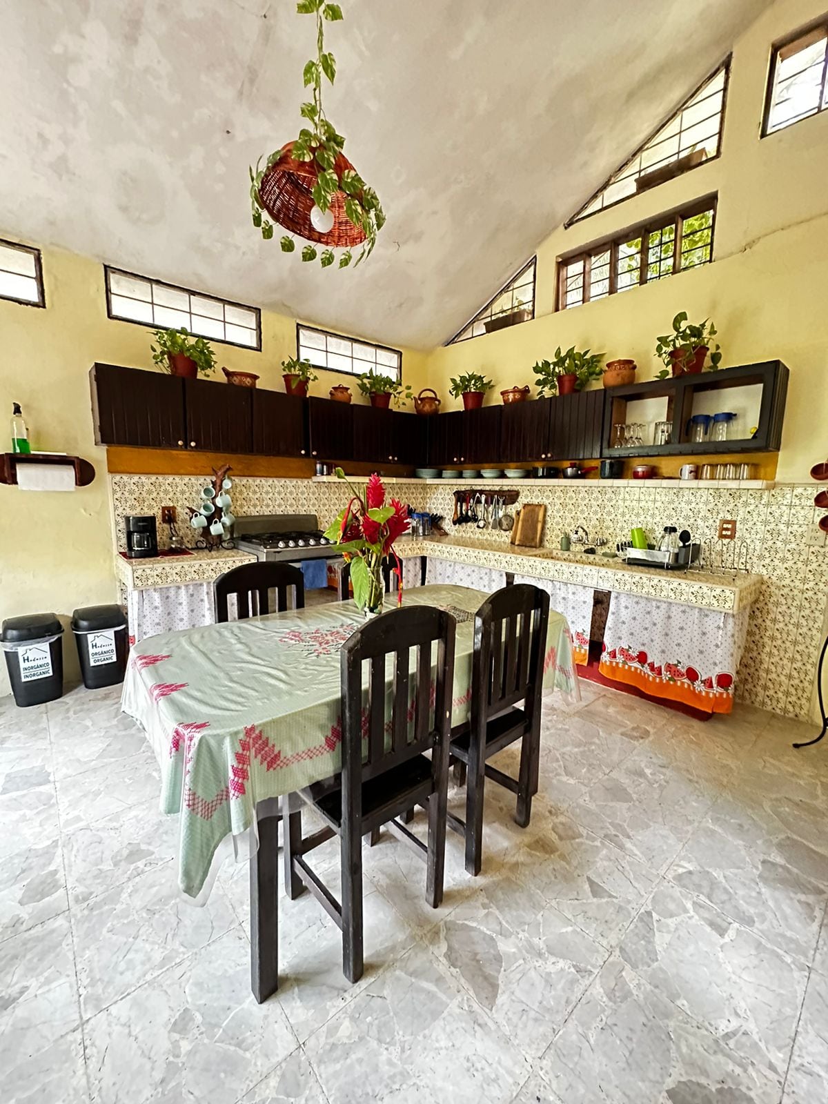comfortable and homey 2 bedroom apartment on the 2nd floor of a quiet building, in a fenced compound with a yard. It's located along the road from Palenque town to Palenque National Park and its stunning Mayan ruins, only 2 minutes' drive from the city center. You can cook your own meals in the well equipped kitchen and enjoy them around the nice dining table while surrounded by tropical trees, inhabited by howler monkeys and a great diversity of colorful birds.