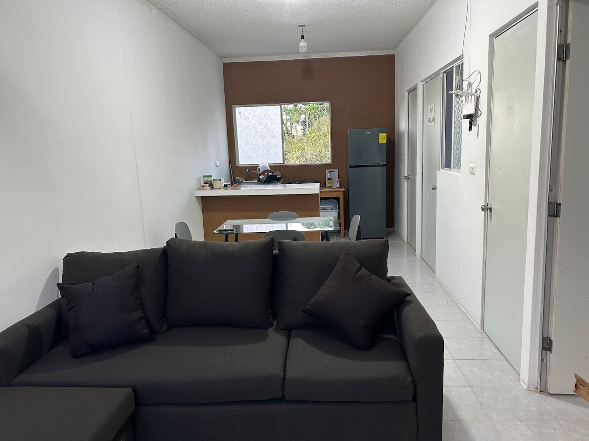 Céntrico departamento a 4 cuadras (600mts) del parque central, de restaurantes típicos con artesanías, música típica (de marimba) y de transporte a las zonas turísticas. Cuenta con 2 camas, comedor, cocina, baño, rooftop. La cascada Misol-Ha se encuentra a 13 km, y la de Agua Azul a 31 km, la zona arqueológica esta a 20 min. en auto. La estación central de autobuses se encuentra a 1.1 km. A la llegada de los huéspedes se cuenta con personal calificado para su recepción.