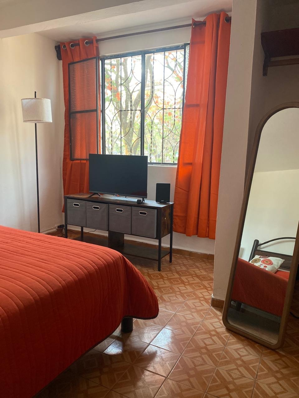 comfortable and homey 2 bedroom apartment on the 2nd floor of a quiet building, in a fenced compound with a yard. It's located along the road from Palenque town to Palenque National Park and its stunning Mayan ruins, only 2 minutes' drive from the city center. You can cook your own meals in the well equipped kitchen and enjoy them around the nice dining table while surrounded by tropical trees, inhabited by howler monkeys and a great diversity of colorful birds.
