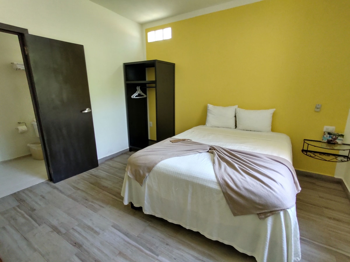 Desconecta tus preocupaciones en este espacio amplio y sereno. Este departamento de 3 habitaciones tiene todo para que pases unos días de descanso y lujo, compartiendo con la naturaleza escenarios naturales . Céntrico y bien comunicado. Pero a la vez rodeado de selva. Podrás ver monos, aves y las estrellas. Una gran opción para Palenque.