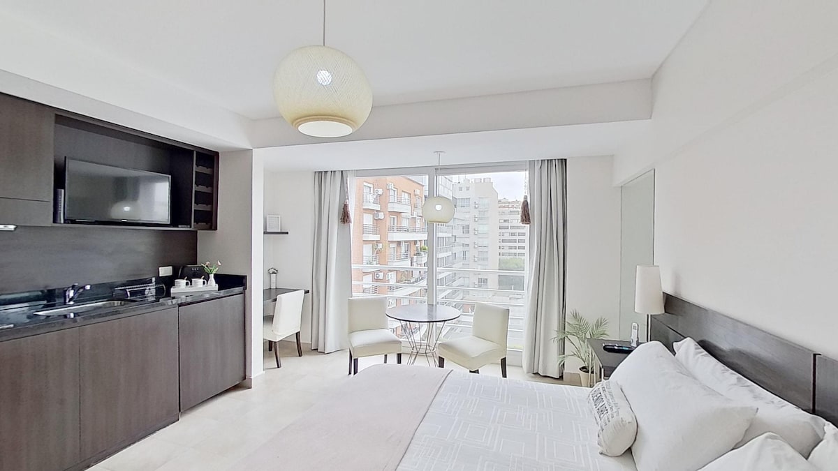 Beautiful brand new studio, fully furnished with excellent quality equipment -TV 32' with cable/Netflix, WIFI 100 MB, A/C hot-cold, King Size bed, desk, full kitchen, -in a Hotel style building with 24 Hs security, swimming pool, Gym, laundry. Located in the heart of Palermo Soho: 200 mts. from subway D/Plaza Italia (Santa Fe Av.), close to stores, bars, restaurants, shopping malls, parks, museums and with easy access to downtown and many touristic spots!