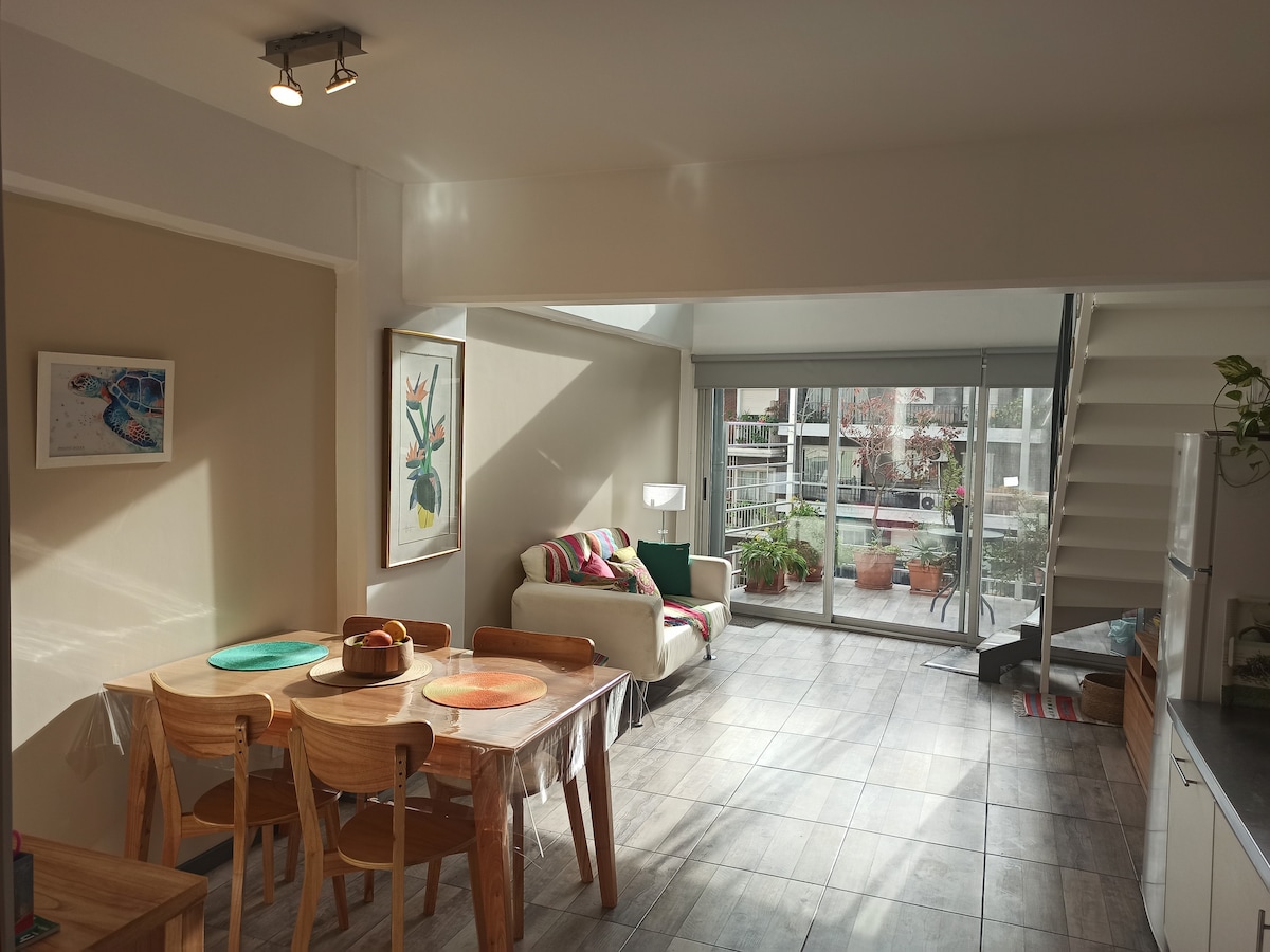 Unique Stunning loft to enjoy trendy neighborhood of Palermo and feel at home. It is a very bright apartment, fully equipped and in a modern building with Premium amenities. Common Areas such as stunning terrace pool with an incredible view of Buenos Aires, outdoor seasonal pool on the ground floor with a beautiful garden, plus equipped gym and 24 hour security. Central Location in the heart of Palermo Hollywood walkable to a unique offer of incredible restaurants, bars and cafes.
