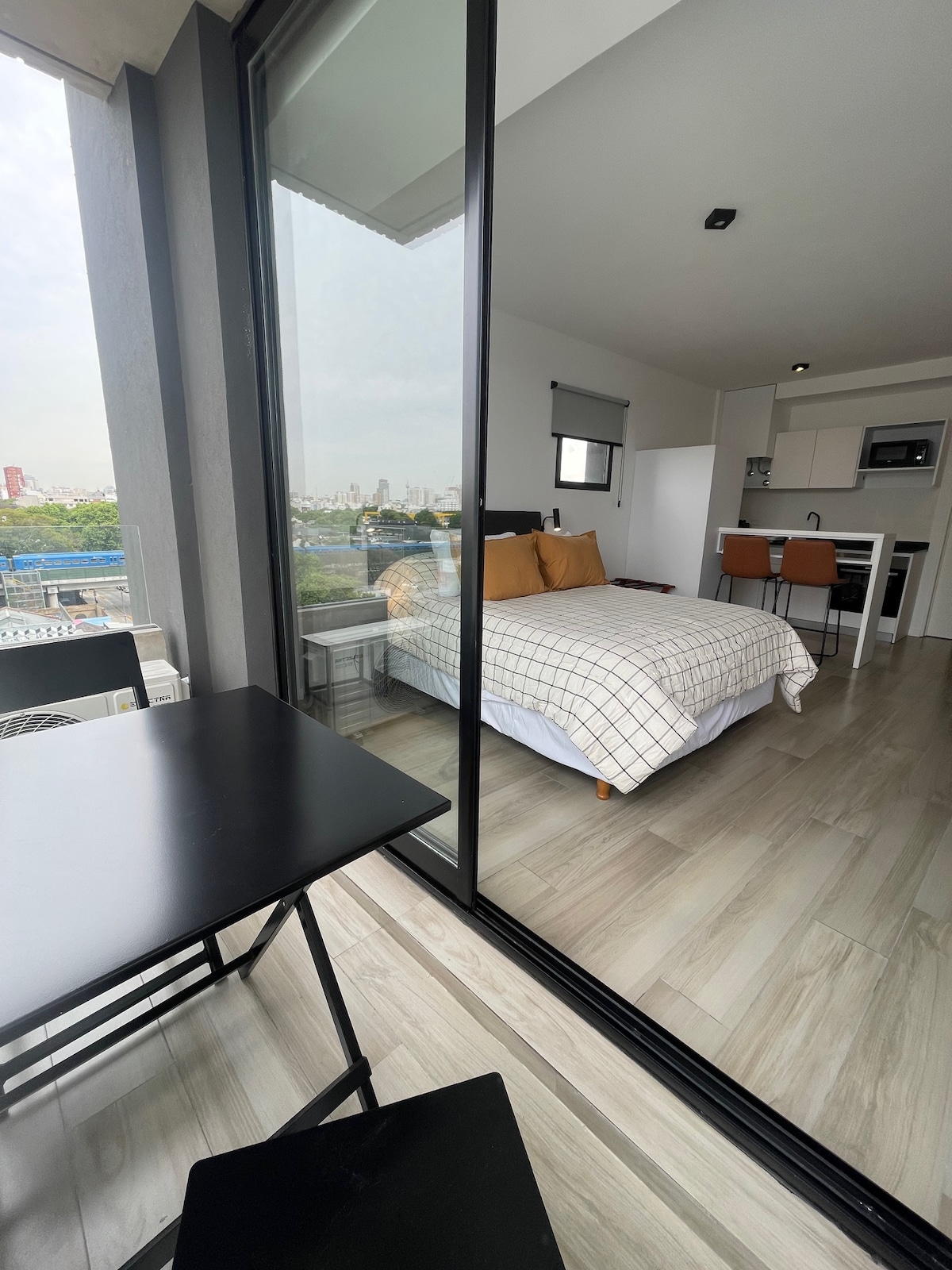 带阳台的现代单间公寓,可欣赏迷人的城市美景