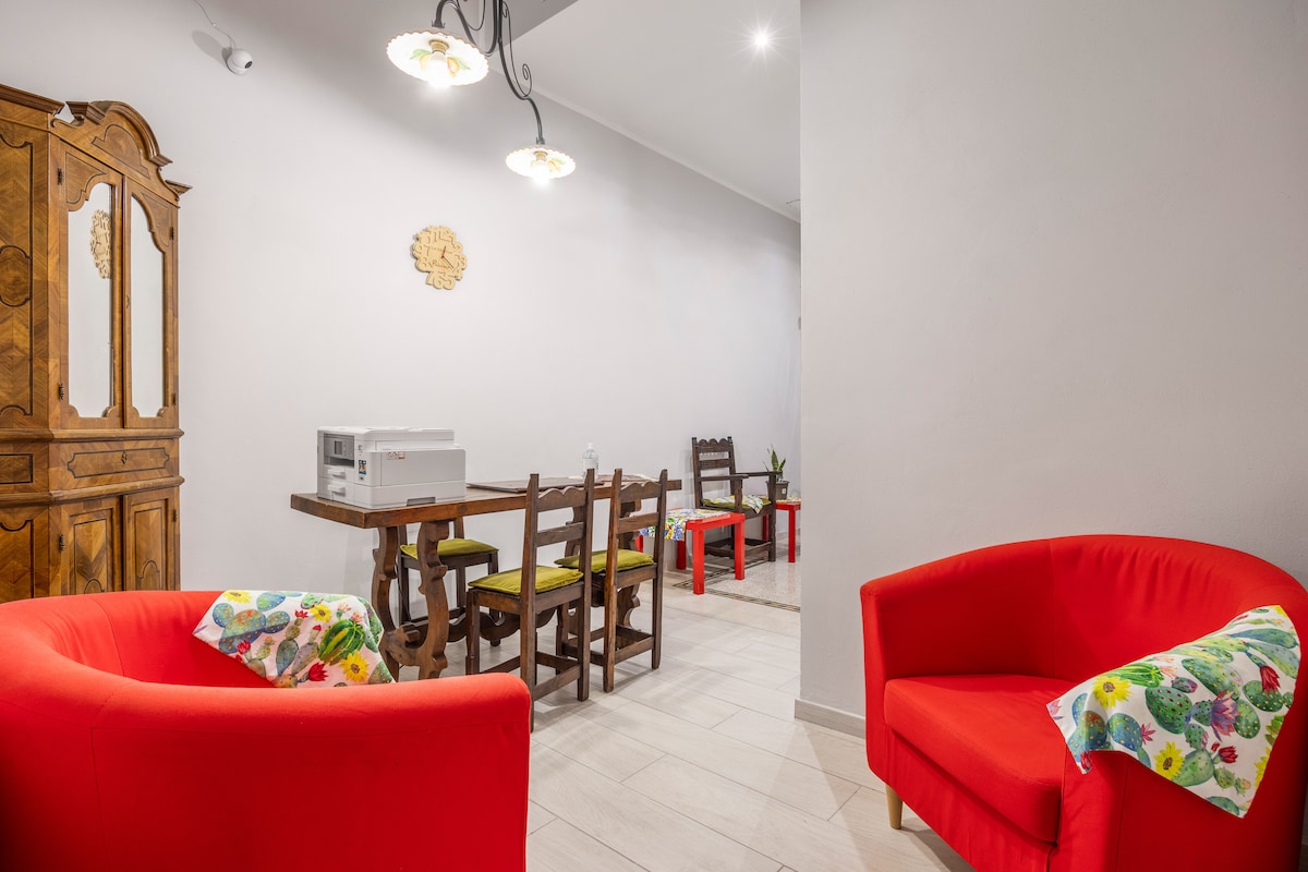 A 100 metri dalla stazione centrale di Palermo. Per la prima colazione, a disposizione un grande soggiorno ed un terrazzo coperto. L'appartamento è composto da 4 camere. OGNI CAMERA E' COMPLETA DI: -Bagno privato -Armadio -Scrivania -Sedia e porta valigia -Letto matrimoniale (200x160) -2 Letti singoli (200x80) -Balcone -Biancheria pulita ogni giorno -Accessori per il bagno -Climatizzatore -Impianto di riscaldamento -Smart TV a schermo piatto 28 pollici -Cassaforte -FrigoBar -Connessione Wifi