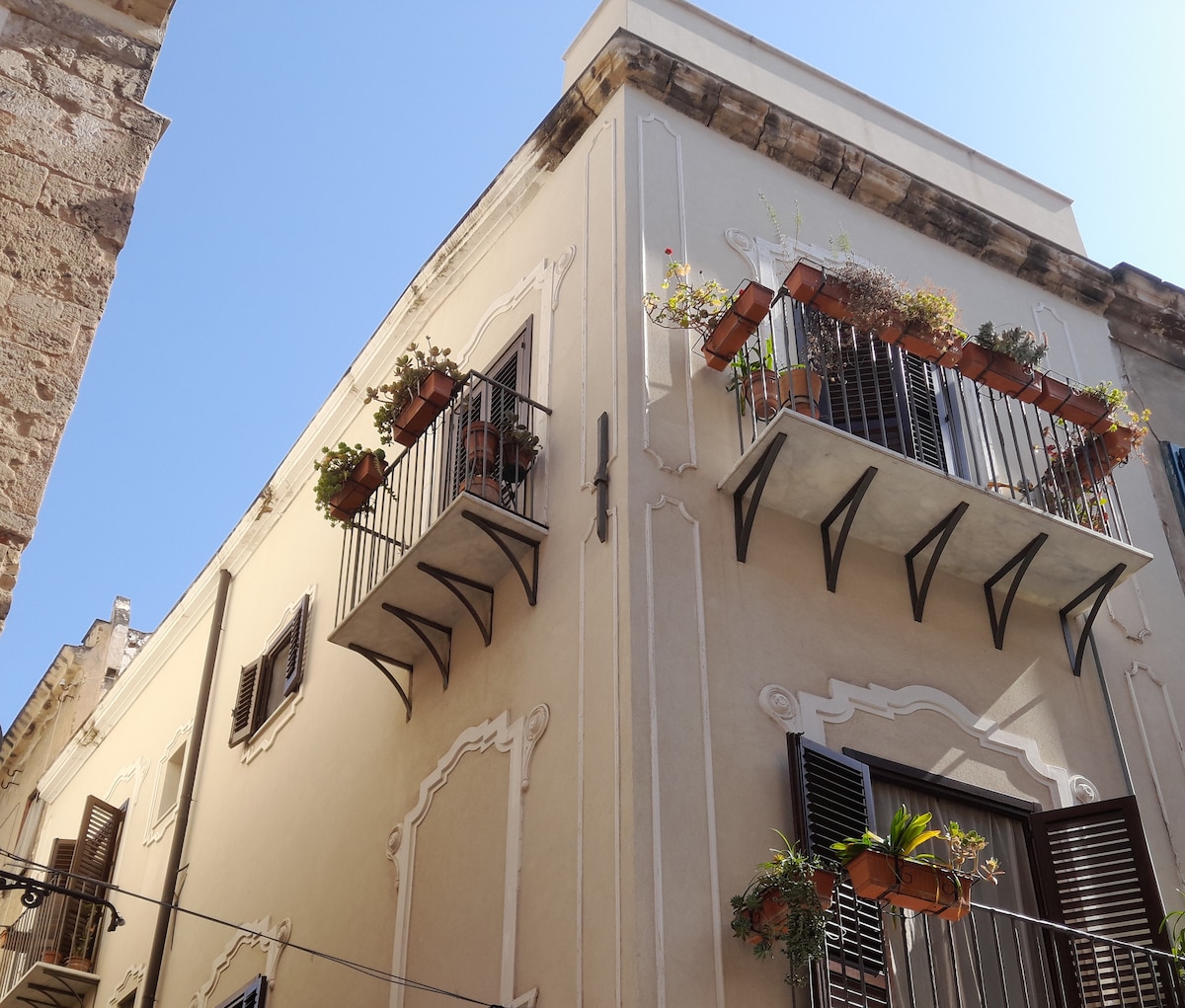 L'appartamento, che dispone di WI-FI, si trova al secondo piano di un palazzo storico interamente ristrutturato, provvisto di ascensore. Si estende per una superficie complessiva di 130 mq su un unico livello, più altri 40 mq di terrazza alla quale si accede da una elegante scala presente nella living room. Al suo interno sono presenti due camere da letto provviste di letti matrimoniali (160x200 in una e 140x200 nell'altra), aria condizionata, riscaldamento e televisori dotati anche di antenna satellitare (al momento delle foto non erano ancora presenti), due bagni provvisti di doccia, un ampio ed elegante salone arredato anche con particolari siciliani, provvisto di divano letto due piazze (sfruttabile su richiesta con un costo aggiuntivo di 20 euro a persona) e paravento, anch'esso fornito di aria condizionata e TV, comunicante tramite un'ampia apertura con la zona cucina corredata di forno, lavastoviglie, forno microonde, bollitore, macchina del caffè, un tavolo per la prima colazione e quant'altro occorrente per farvi sentire a casa; è inoltre presente un locale lavanderia provvisto di lavabiancheria, così da permettere comodamente anche lunghi soggiorni. L'ampia terrazza arredata provvista di ombrellone è ideale per trascorrere piacevoli momenti. Posizione: a dieci minuti dalla stazione centrale e dalla zona di sosta dei taxi, situata nel cuore del centro storico, tra via Maqueda e via Roma, a pochi passi da alcuni dei principali monumenti della città, tra cui: piazza Pretoria, la chiesa della Martorana e quella di Santa Caterina, i Quattro Canti (crocevia della Palermo antica), la Cattedrale e il Palazzo Reale, per citare solo alcuni degli splendidi monumenti che fanno parte del percorso arabo-normanno ( riconosciuto patrimonio UNESCO ). A pochi passi dai mercati storici della Vucciria e di Ballarò, ma comunque situata in un contesto tranquillo e silenzioso. La sera le vicine piazze di Sant'Anna e della Vucciria si animano, diventando il luogo ideale per un piacevole aperitivo e occasione di incontro e scambio culturale.