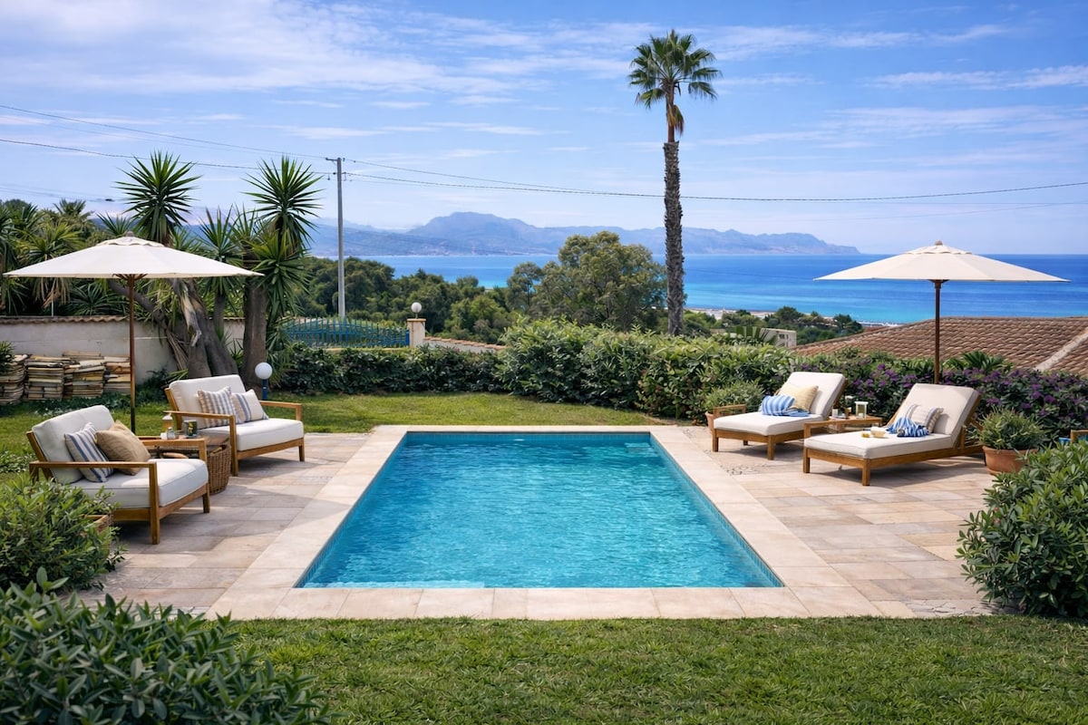 Villa con vista mare e piscina a pochi metri dalla spiaggia del Kafara a Santa Flavia, località costiera a pochi chilometri da Palermo. - a soli 50 metri dalla spiaggia del Kafara - 3 camere da letto - Patio esterno - aria condizionata - Wifi - Parcheggio gratuito privato in struttura - Piscina ( la piscina è condivisa con gli altri ospiti della struttura) - Animali benvenuti Tourist tax: 2 euro a person per night up to 6 nights. Children under 10 exempt. Payment cash at arrival.