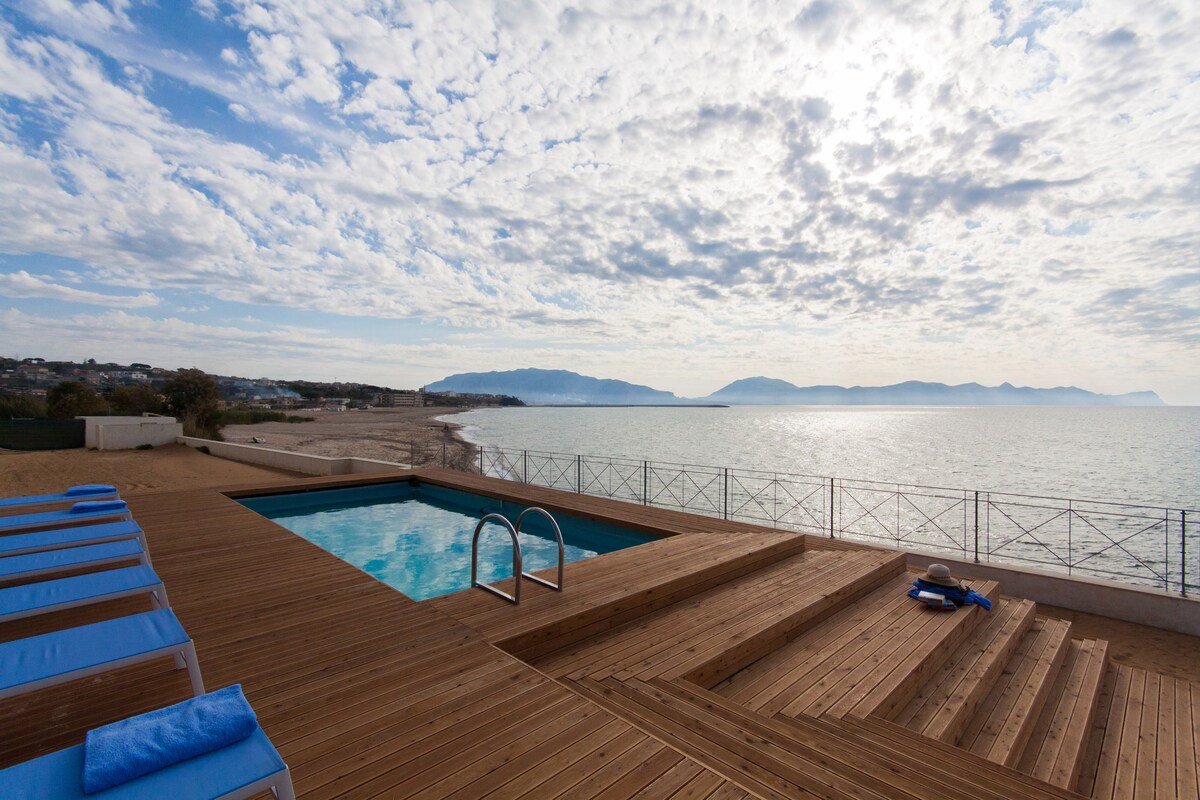 Villa indipendente e appena ristrutturata che si affaccia sulla spiaggia di Balestrate. Composta da tre camere da letto, bagno ed ampia zona living con cucina completamente attrezzata, spaziosi spazi esterni attrezzati per pranzi all'aperto, lettini da sole e solarium. Free wifi, Sky TV, biancheria da bagno, da cucina e da camera, parcheggio e pulizie finali.