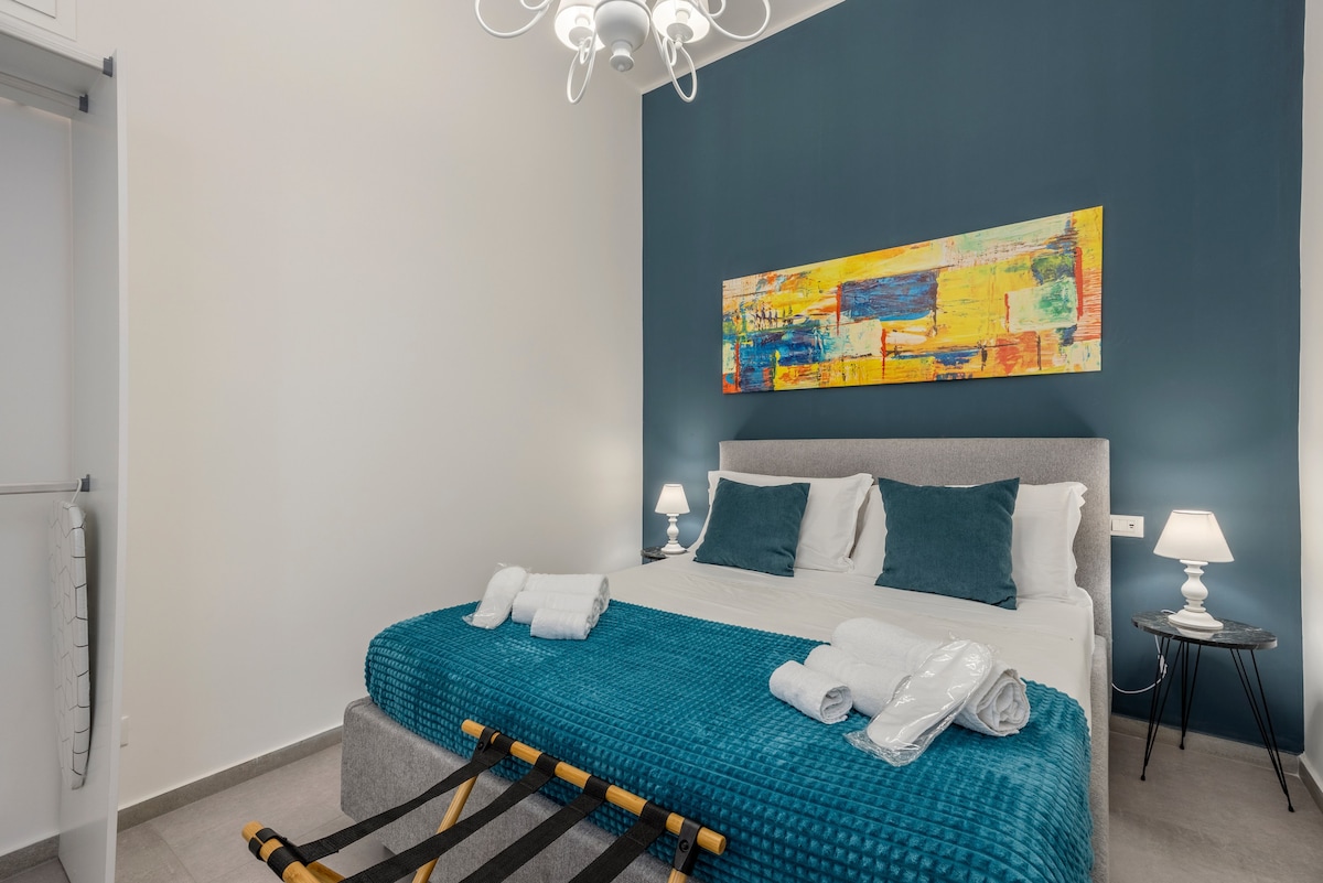The Comitini room in Palermo offers 18 sqm of space and accommodates up to 2 guests. It features a double bed and a bathroom. The washbasin with backlit mirror is inside the room, while the bathroom includes a hand basin and a walk-in shower. Private amenities include high-speed Wi-Fi, a 43-inch TV, air conditioning, a mini fridge, and a dedicated workspace. Enjoy a comfortable stay in a modern setting, perfect for both relaxation and productivity during your visit to Palermo.