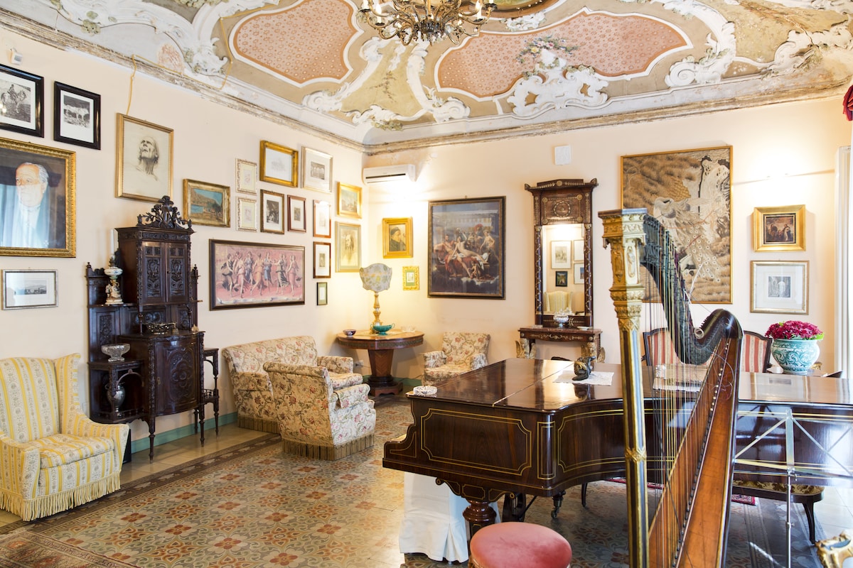 una bellissima casa in un palazzo nobiliare del settecento, nel cuore dell'antica Palermo. Una camera da letto matrimoniale e due letti singoli nel salone molto ampio. Due terrazze, al 4° piano a piedi, una al coperto e una allo scoperto, condivise con gli ospiti dell'altra casa vacanze, offrono una vista mozzafiato a 360° su Palermo. Vi aspettiamo. Sarete immersi nel cuore del centro storico, ricco di locali, per aperitivi, serate danzanti, per gradevoli serate anche nelle vicinanze.