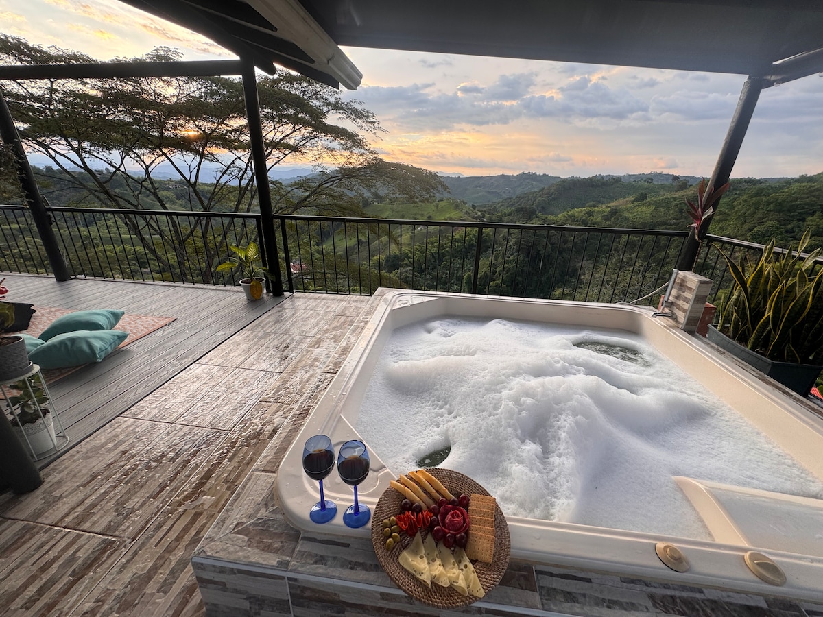 Private villa in the heart of Colombia’s Coffee Region, perfect for families and groups. Enjoy a private pool, jacuzzi, outdoor social kiosk, and two fully equipped kitchens one open-air Surrounded by lush gardens and mountain views, WiFi, a BBQ area, and comfortable bedrooms.Just 1 hour from Pereira Airport,close to Parque del Café, Panaca, Salento, Cocora Valley, Nevados National Park,Santa Rosa Hot Springs. Fully equipped, with an optional local cook for meals extra costYour perfect getaway