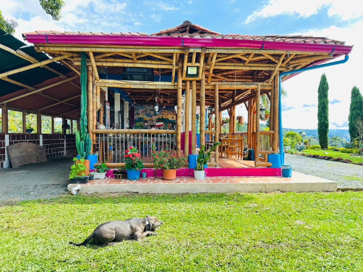 Finca en zona cafetera de Caldas. Cuenta con piscina, jazuzzi, 5 habitaciones. Queda a solo 10 minutos de Santagueda y a 20 minutos de Chinchiná. Posibilidad de contratar una empleada. (Necesario confirmar disponibilidad) La totalidad de la casa y áreas húmedas son privadas y para tu uso exclusivo. No compartirás el espacio con nadie más. Por tu seguridad, la casa y sus áreas sociales tienen cerramiento y una cámara de seguridad en el acceso. Red wifi de alta velocidad.