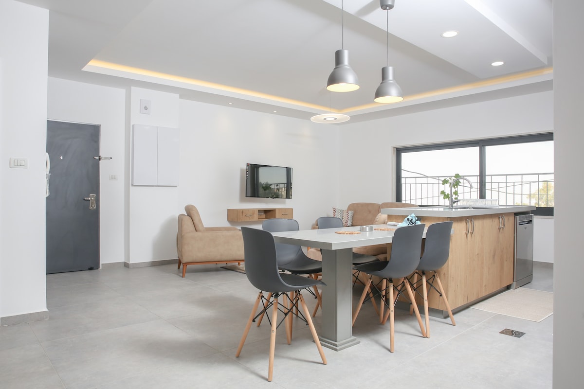 انعم بالهدوء والاسترخاء بصحبة عائلتك في هذا المسكن الهادئ. نظيف لم يسكن بعد وموقع دقائق عن مركز البلد مشيا على الاقدام . البناء حديث جدا . الشقة تنعم بكل وسائل الراحة من تكييف وتدفئة واثاث ممتاز وأجهزة كهربائية متكاملة . غرفة نوم واحدة واسعة باثاث مميز وحمامين منها واحد ماستر . غرفة النوم مخصصة لشخصين أزواج او غيره او شخص واحد .