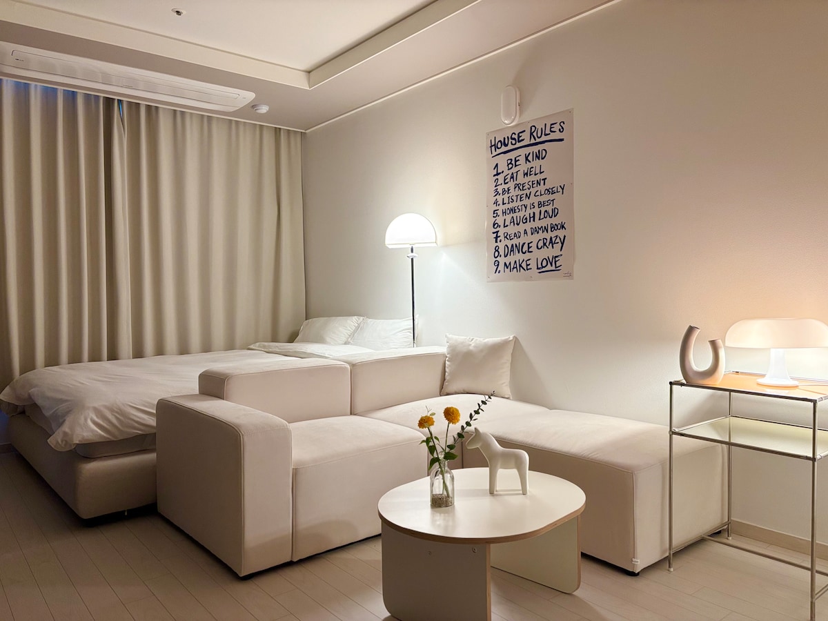 1月/东大区/距离KTX百货店2分钟/年末/回忆/感性/酒店床上用品/55英寸Netflix/2间客房/2张大床/最多6人