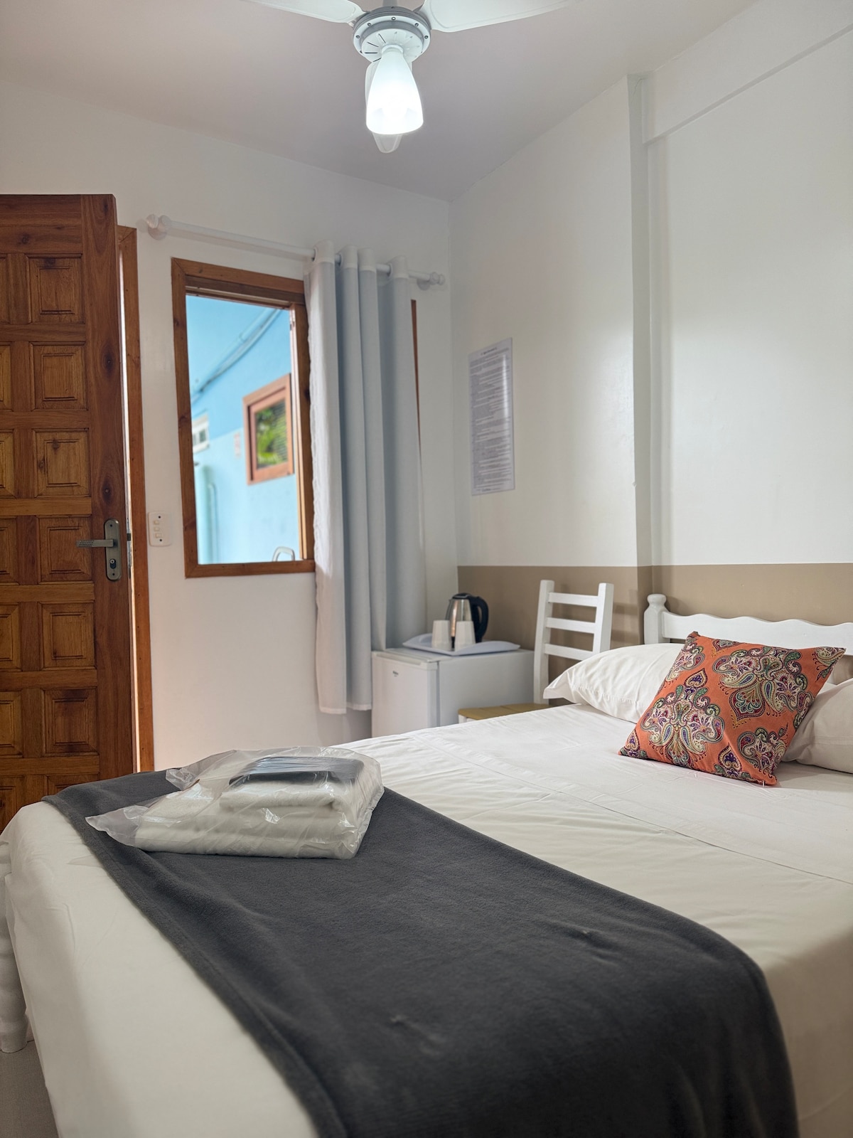 As suítes econômicas são pequenas e bem simples, compostas por um quarto com uma cama de casal, um pequeno banheiro completo e varanda. São equipadas com roupas de cama e toalhas, amenidades de banho, ventilador de teto.