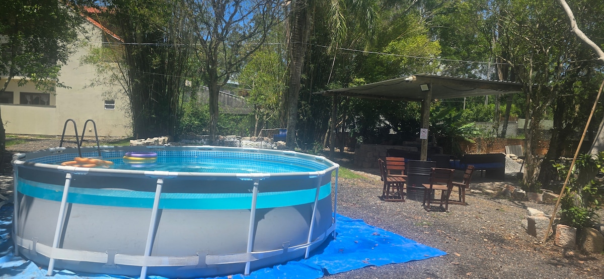 Relaxe neste espaço calmo e cheio de estilo. O chalé está em meio a mata nativa ,cercado de belezas naturais, muitas espécies de aves , também próximo as belas praias e cachoeiras de Palhoça.