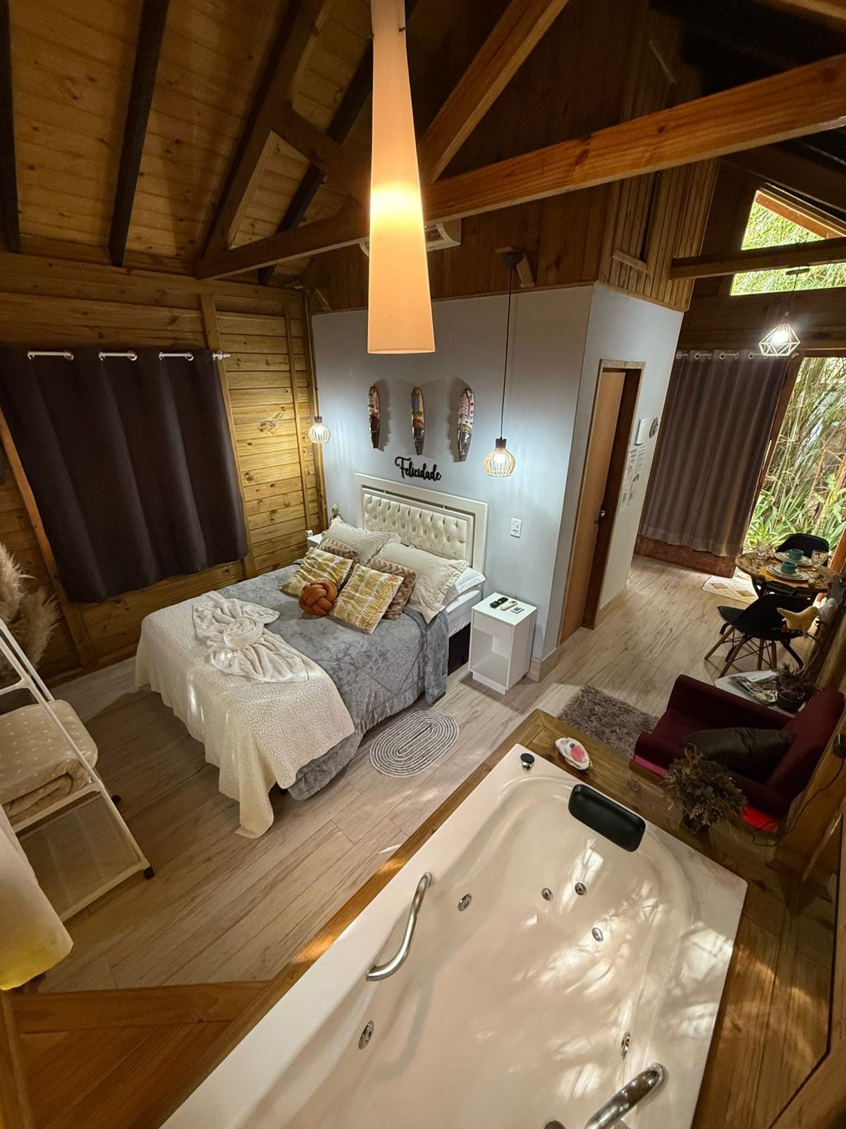 Chalé exclusivo para casais - Wi-Fi - Cozinha completa ( microondas, sanduicheira elétrica, chaleira elétrica, panelas, fogão cooktop ) - Frigobar - Roupas de cama e banho - Banheira de Hidromassagem - Lareira - Cama Box King - Espuma de banho - Café da manhã completo - Local excelente para descansar, e desfrutar a natureza Não aceitamos Pet