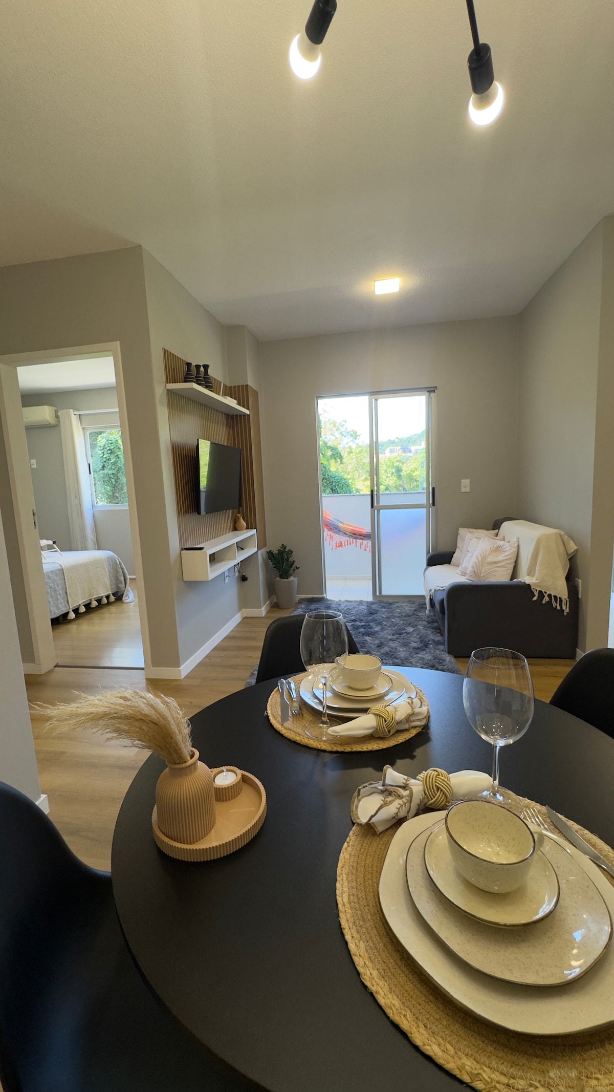 Apartamento confortável, clean e aconchegante, ideal para descanso ou viagens a trabalho. Sala integrada com jantar, cozinha equipada e sacada com churrasqueira. Quarto confortável com roupa de cama de qualidade e banheiro. Possui ar-condicionado no quarto, Wi-Fi rápido e vaga de garagem coberta. Localização estratégica em São José, com fácil acesso a Florianópolis. 5 min de mercados e farmácias 5 min BR 101 5 min Continente Shopping 15 min do Hard Rock e Florianópolis