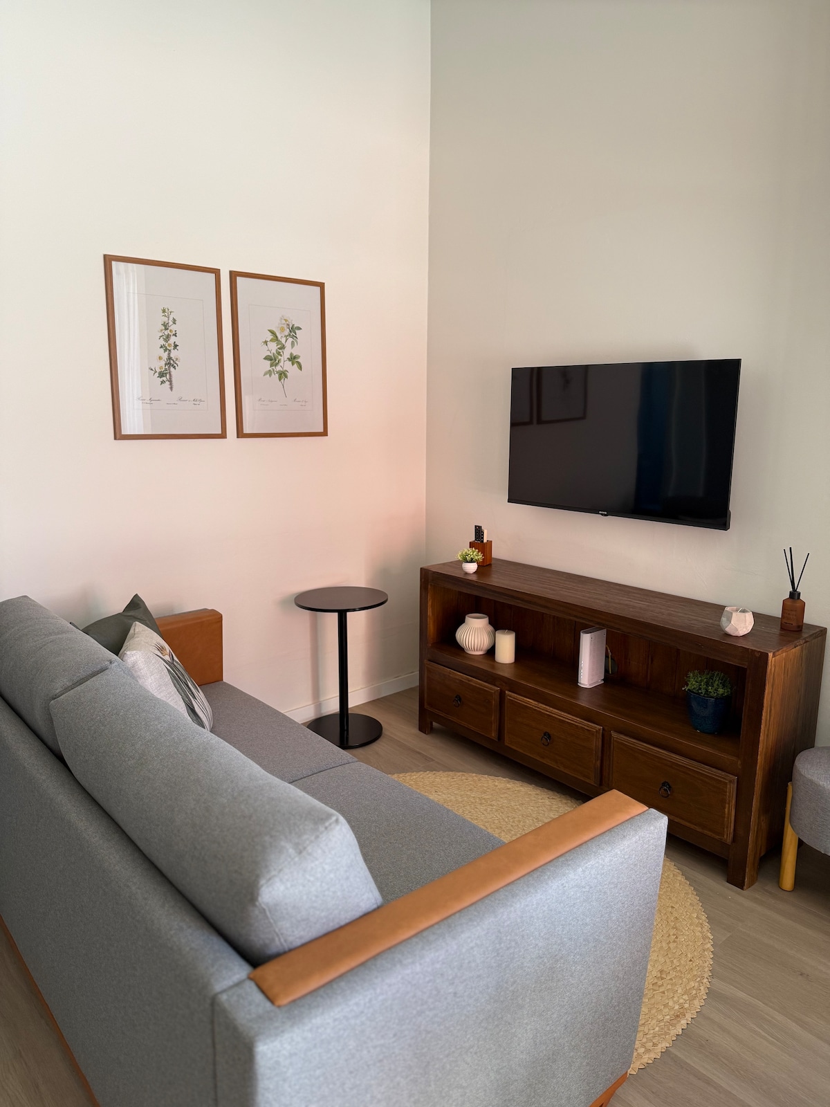 Espaço confortável localizado numa tranquila servidão na Praia da Pinheira a 700m da Praia de Baixo, 2km da Praia de Cima e 2,5km da Guarda do Embaú. O apartamento acomoda até 2 adultos e 1 criança; dispõe de uma cozinha completa com fogão, micro-ondas, geladeira. Sala com poltrona, puff e Smart TV 32 polegadas. Um quarto com cama de casal, cabideiro, ventilador e chuveiro elétrico. Além de uma aconchegante varanda com churrasqueira.