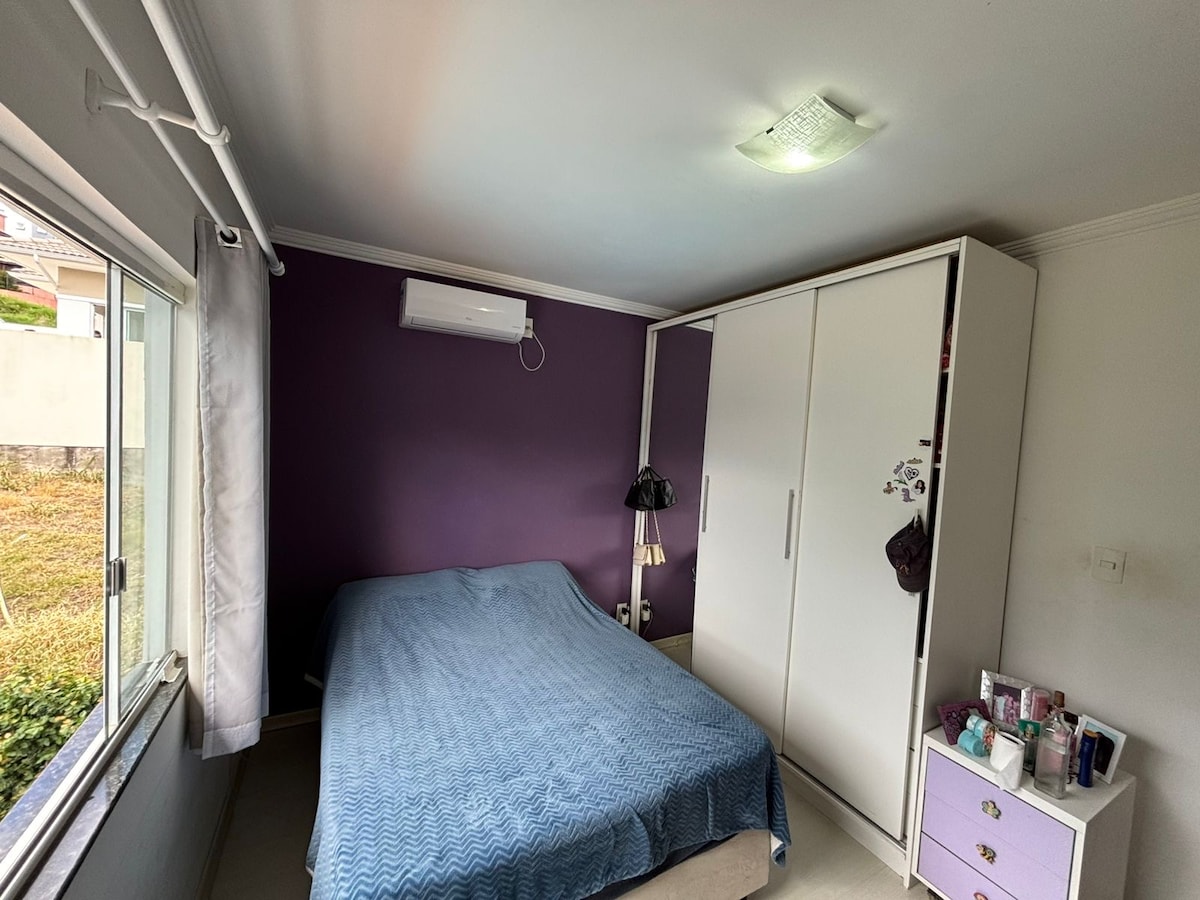 Casa Pedra Zen – Seu cantinho de paz na Pedra Branca Refúgio independente e aconchegante, perfeito para descansar, trabalhar ou estudar. A 650 metros do Passeio Pedra Branca. 1 quarto com mesa de estudo/trabalho Sala e cozinha conjugadas Banheiro completo Pátio privativo Os hóspedes podem participar de aulas de yoga em grupo ou particulares no estúdio da propriedade. Equipado com Wi-Fi, ar-condicionado, micro-ondas e airfryer, oferecendo tudo para uma estadia confortável e relaxante.