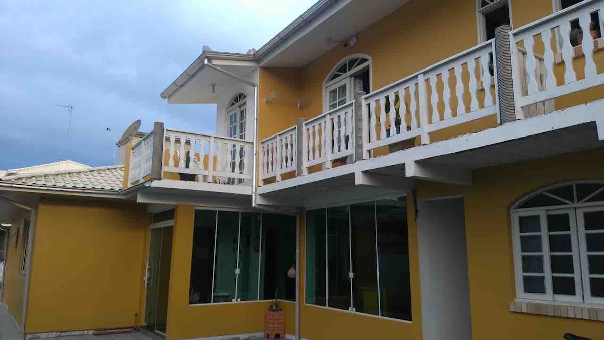 Lindo Studio na Praia da Guarda do Embaú, à 10 minutos andando da praia, bares e restaurantes. Ideal para quem gosta de curtir a natureza durante o dia e à noite badalada da Guarda. A área de laser num quiosque com churrasqueira e fogão à lenha com gramado e árvores proporciona aconchego e tranquilidade (uso compartilhado com Studio). A casa foi reformada no final de 2019, tem água de ponteira para não faltar no verão, chuveiro na rua e estacionamento para o carro na frente da casa.