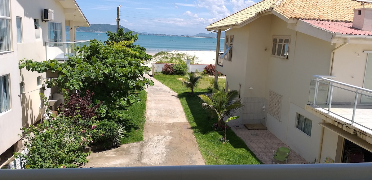Lindo apartamento pé na areia, familiar. Local paradisíaco P/ 2 pessoas, abriga até 3_4 mediante consulta a anfitriões.Aceitamos Pets. Vista P/ mar, 2 piso em Residencial. Entre duas praias, águas calmas e límpidas. wifi , estacionamento, churrasqueira, cadeiras.Roupa de cama/ banho/guarda sol são alugados. Restaurantes, bares, mercados, farmácias a 500 m, trilhas e passeios de barco. Perto de Florianópolis, Pinheira e Guarda do Embau. Entrada pela beira da praia.