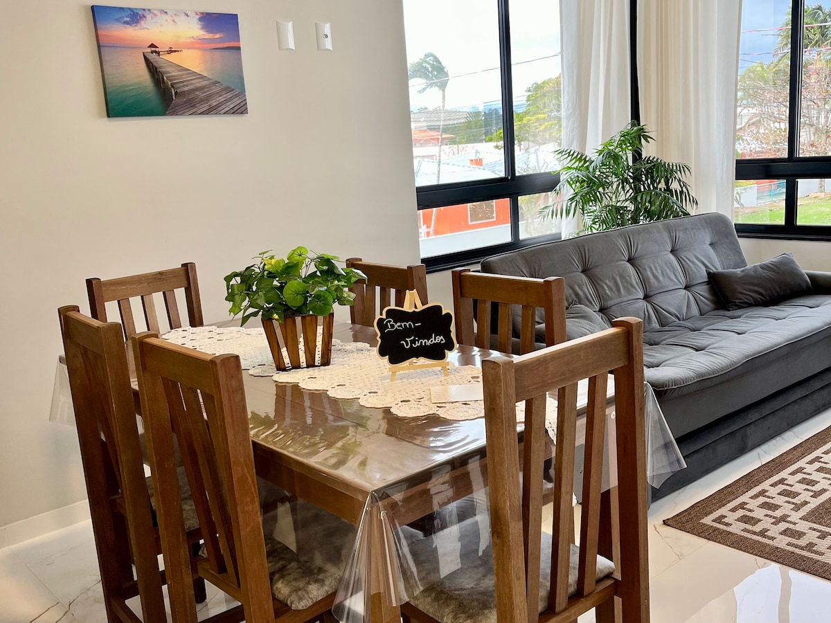 Acomodação nova e confortável, a apenas 300 m do shopping e supermercado, com acesso rápido às praias belíssimas da região. Localização estratégica e ótimo custo-benefício para casais, famílias ou amigos. • Espaço privativo • 2 ar-condicionados • 1 quarto + 1 sofá-cama • Wi-Fi e Smart TV • Cozinha completa • Máquina de lavar • 1 vaga de garagem • Área externa *Não é permitido fumar na área interna. *Pets: máximo 2. Obrigatório informar no app. (Verificação por câmeras externas).