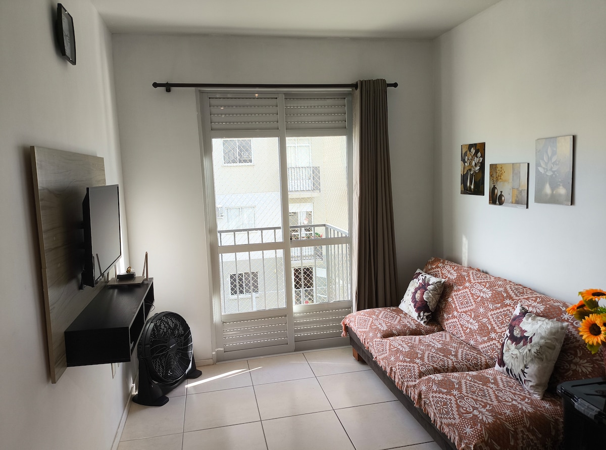 Buscando um lugar tranquilo, com infraestrutura completa para relaxar, trabalhar ou se divertir, sozinho ou com sua família? Este é o lugar! - Apto confortável e aconchegante, completamente mobiliado, com sacada para desfrutar de uma linda paisagem (vista para o mar e para as montanhas), à 50m do mar - 1 vaga de estacionamento dentro do condomínio - Localização: Residencial Brisas do Oceano, Praia de Fora, Palhoça