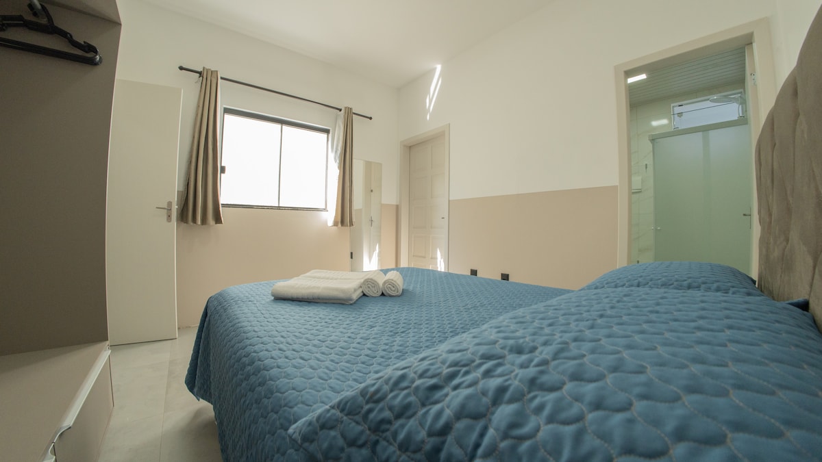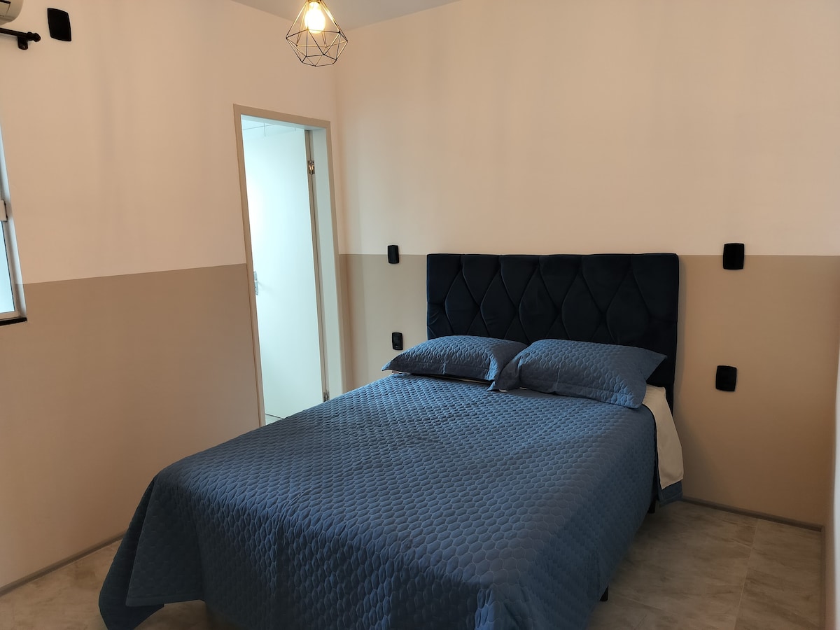 Pequeno apartamento de 1 quarto, cozinha e banheiro ideal para 2 pessoas. A 300 metros da praia, a 5 Km do centro da pinheira e próximo a muitas outras praias, como a ponta do papagaio e guarda do Embau. O terreno é formado por uma casa principal e 02 apartamentos nos fundos, todos os hóspedes compartilham do espaço externo que tem uma piscina, jardim e chuveiro. Os carros ficam estacionados em frente à casa. Pet são bem vindos, mas precisam ser incluídos na reserva e seguir as regras