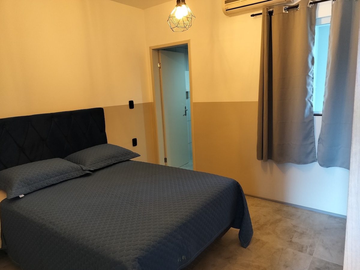 Apartamento de 28m2 com 1 cama de casal, armário e ar-condicionado. Banheiro com chuveiro elétrico. Sala/Cozinha com sofá cama, geladeira, microondas, utensílios de cozinha pra 4 pessoas, televisão Smart. Localizado na Praia do Mar Aberto, a 600m da praia, próximo a Praia do Sonho, Ponta do Papagaio, Praia da Pinheira, Praia do Embaú, Garopaba e a 50km de Florianópolis.