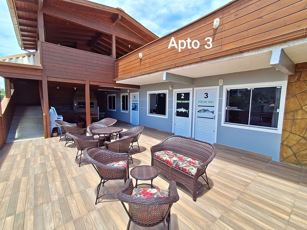 Apartamento está localizado numa tranquila servidão na Praia da Pinheira a 700m da Praia de Baixo, 2km da Praia de Cima e 2,5km da Guarda do Embaú. Acomoda até 2 adultos e 1 criança; dispõe de uma cozinha completa com fogão, forno elétrico, micro-ondas, torradeira, geladeira, cafeteira e liquidificador. Sala com sofá retrátil e TV. Um quarto com cama de casal, guarda roupa, espelho grande e ventilador. Banheiro com banheira hidromassagem e chuveiro elétrico. Além de uma espaçosa varanda.