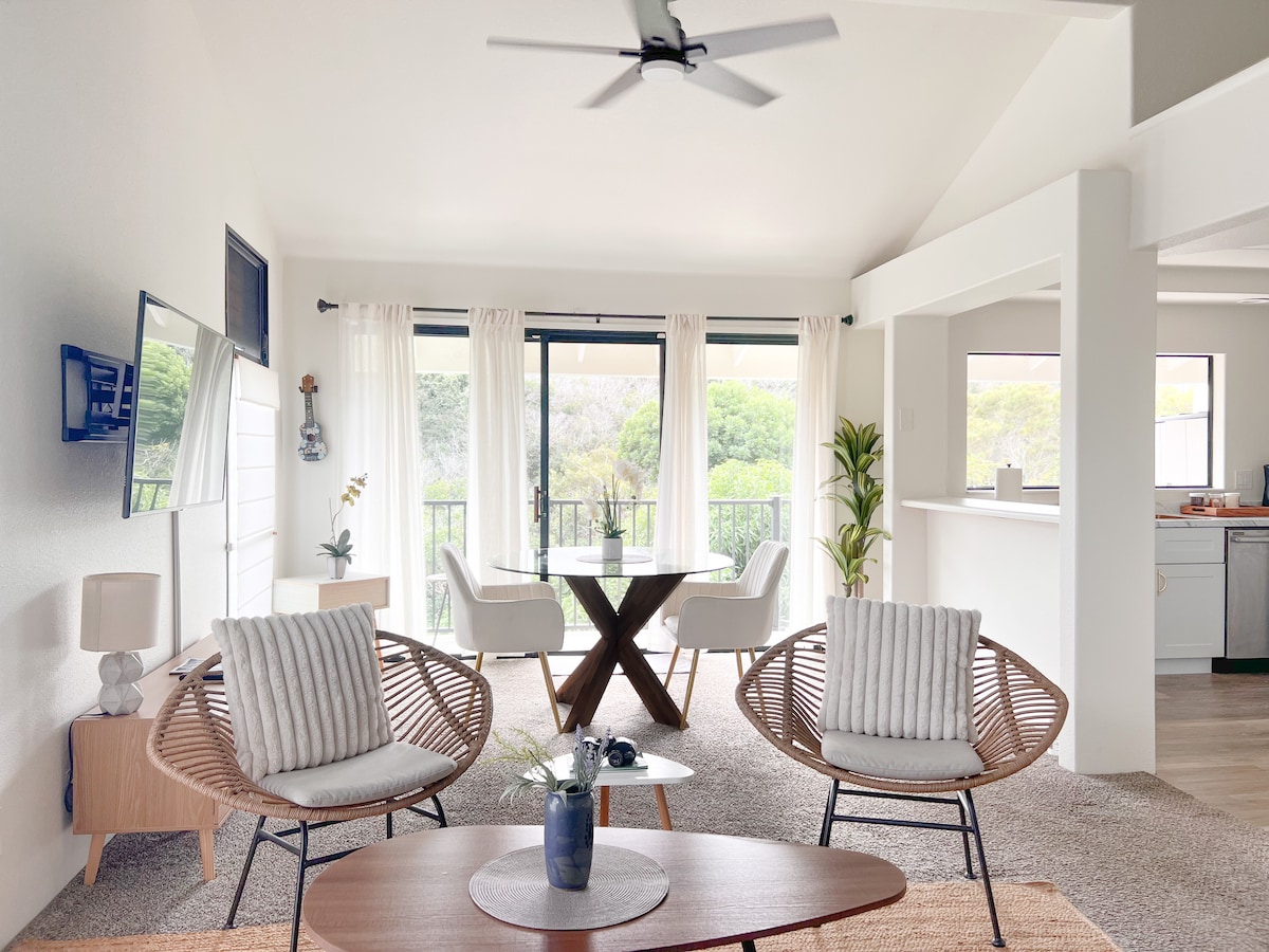 Your beautiful base camp to adventure awaits! Newly-renovated, fully-appointed guest suite above the garage of our family home. Private lanai, peekaboo oceanview, bikes, kayak, SUP and surfboard included with your rental. Bright, breezy unit with gorgeous vaulted ceilings, fresh white linens, a pillow top mattress and coffee to jumpstart your morning. We have everything you need to explore this magical island - recently featured in Condé Nast as one of Hawaii’s top Airbnbs!
