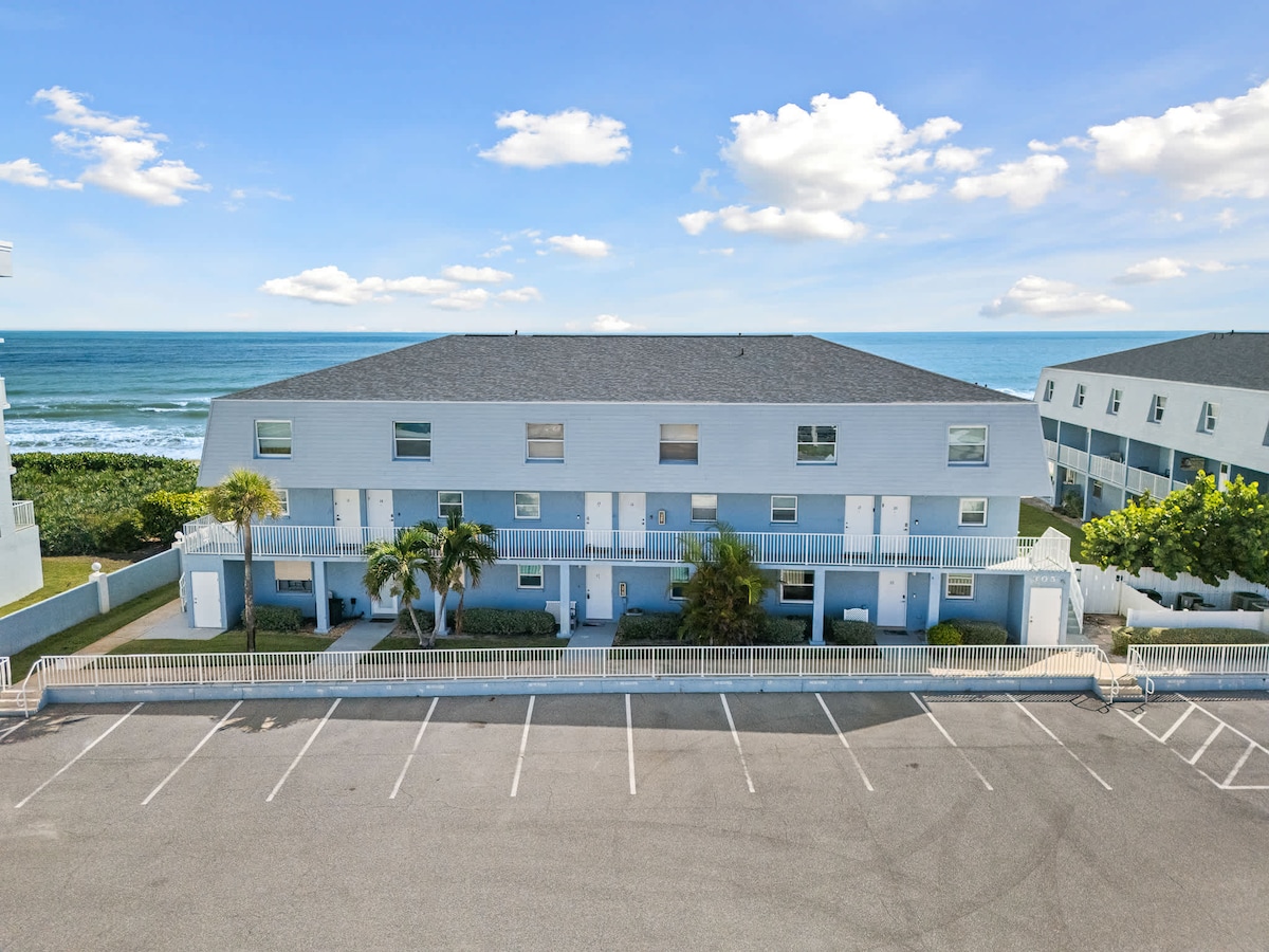 Welcome to Seamark, your beachside complex! Enjoy your coffee with an ocean view from your kitchen table! Lots of natural light. One of the quietest beaches on the Space Coast. Walk, jog, watch a launch, or pray and meditate next to the surf! Take in a Sunrise. (The glow of Sunsets can be absolutely gorgeous too!) You can fish or ride the surf. Turtle Watch (Mar 1-Oct 31). Groceries and restaurants are within walking distance. Melbourne Airport is a 20-min. drive; Orlando is 1 hour.