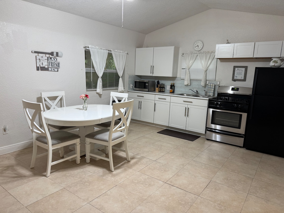 ❤️ ❤️ ❤️ ❤️ ❤️ RATING! 🏆 GUEST FAVORITE! ⏰BOOK NOW! 5 MIN RESPONSE TIME TO YOUR INQUIRY/BOOK REQUEST & WE IMMEDIATELY PLAN YOUR ARRIVAL! 💝 this Spectacular Waterfront 1/1 duplex style PrivateGuestSuite. Parking is steps to YOUR PrivateEntry. Luxurious amenities.HEATED SaltWater POOL,HOTTUB,Kayaks,PaddleBoards! Safe neighborhood of $multiM homes. At back patio you may encounter adorable couple occupying the main house. Plenty outdoor living space to enjoy whatever level of privacy you're after.
