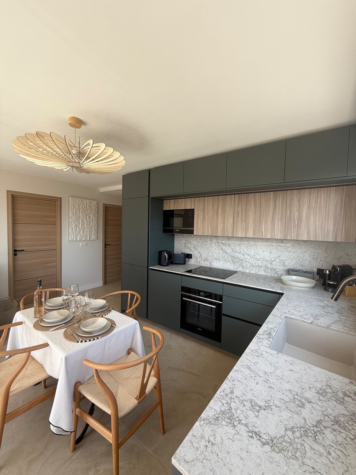 Discover a haven of peace bathed in light, completely redesigned by an architect. Located on the top floor of a prestigious residence, this exceptional apartment welcomes you with its refined décor and high-end finishes, designed for the comfort and well-being of its guests. As soon as you arrive, you will be charmed by the elegance of the spaces, the quality of the amenities, the tranquillity of the two private terraces that invite you to relax between the sky and the sea.