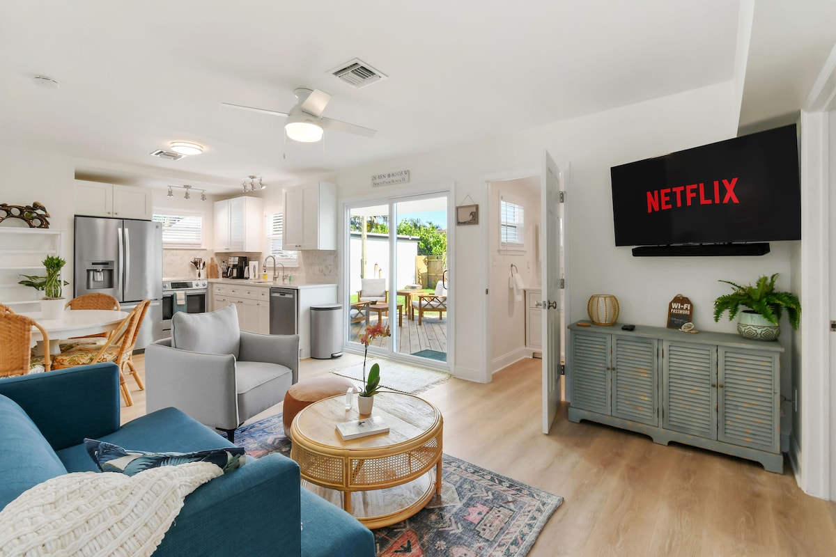 Palm Beach bungalow just 5 minutes from Juno Beach and a short walk to the Intracoastal Waterway. Relax in a private backyard with gazebo and screened porch in a quiet central location near Jupiter beaches, waterfront dining, golf, and boating. Minutes from MLB Spring Training at Roger Dean Stadium (Cardinals & Marlins). A cozy Florida beach vacation rental perfect for exploring Palm Beach County’s beaches, parks, and attractions.