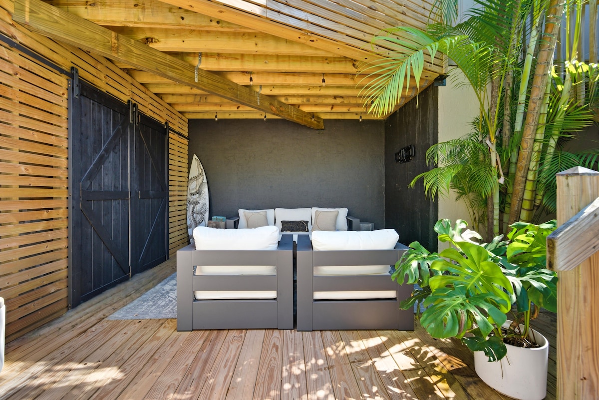 🌴 Recently remodeled 2BR/2BA boho-inspired loft just a short stroll to Jupiter Beach 🏖️. Enjoy a bright open layout, stylish décor, and a fully equipped kitchen 🍴. Relax on your private patio with BBQ, fridge & outdoor shower 🍹🚿. Guests also have access to 2 sparkling pools 🏊♀️ and parking right at your doorstep 🚗. Plus, Jupiter Dog Beach 🐾 was voted USA TODAY’s #1 Dog Beach in America!