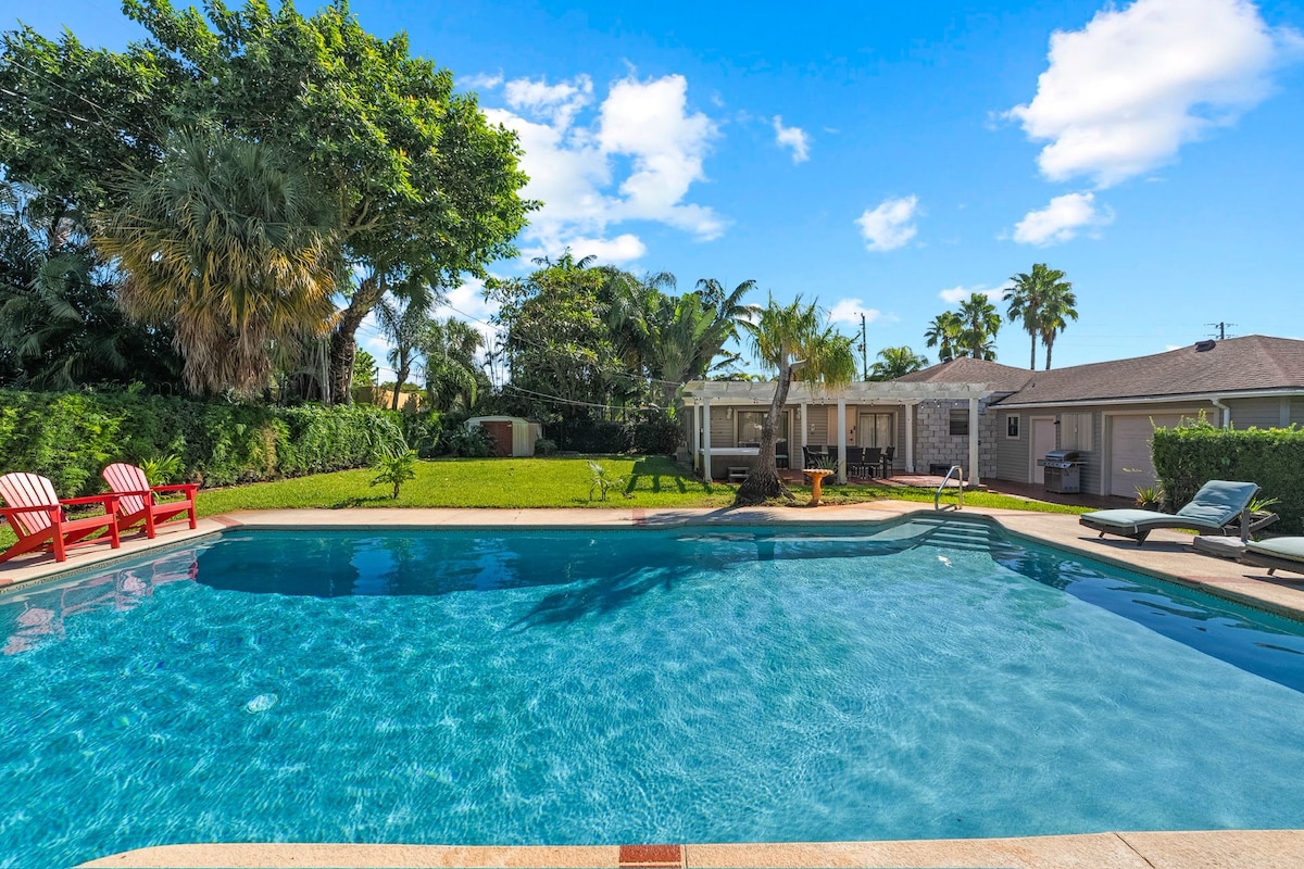 🏊Tropical Oasis Backyard w/ Private Heated Pool 🏞️14 Acre Park w/ Playground/Gym & Lakes Next Door 🎾9 Tennis Courts Next Door 🏛️Palm Beach Convention Center 🍝Walk to Multiple Restaurants 🏖️5 Minutes to Beach & Golf 💃5 Min To Nightlife 🥩Patio w/ BBQ Grill & Dining 💻Laptop Friendly Workspace + Fast Wi-Fi 🏠Extremely Safe neighborhood 🍳Fully equipped kitchen 🧺Washer+ Dryer w/ Detergent 🛌Quality & Comfortable Bed linens & Towels ✈️10 Min To PBI Airport 👶Baby Equipment 🅿️Free Parking