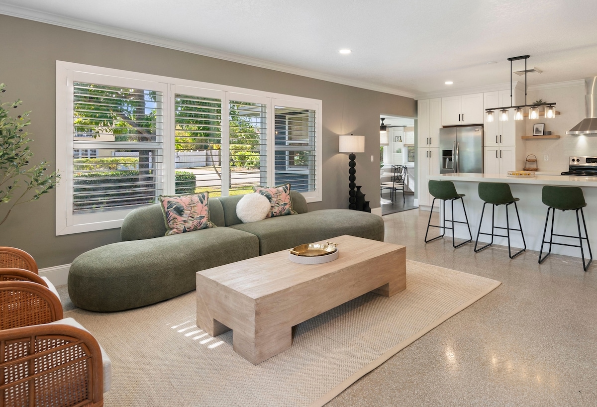 Enjoy a private Flamingo Park retreat with a heated saltwater pool, lush yard, and bright modern interiors. This renovated historic home offers a sleek Italian kitchen, comfortable lounge & dining areas, fast WiFi, smart TV, and Sonos soundbar. Walk to cafés, restaurants, and the Norton Museum. Minutes to beaches, golf, and a family-friendly park with tennis and new pickleball courts. Great for families or business stays.