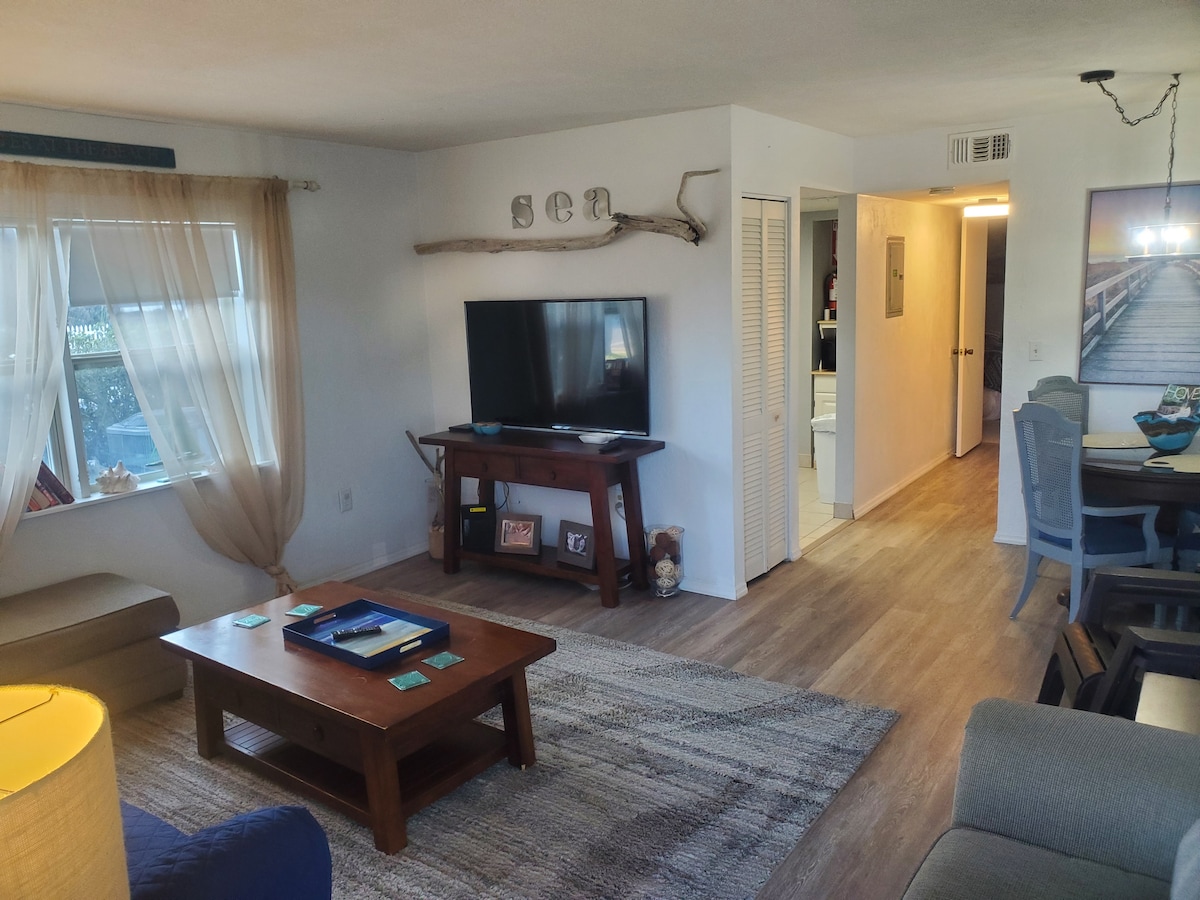 DOWNTOWN!!! WALK TO EVERYTHING!!! DIRECTLY ACROSS FROM THE BEACH!!! Our fully furnished cozy flagler beach condo is centrally located right downtown and only 3 blocks from the iconic flagler beach pier. You can see and hear the ocean from the front door and it is a quick 20 second walk to the beach. This is a ground level access one bedroom with a fold out couch. Park directly in front of your unit and walk to everything for the weekend. LBTR#28785. Full kitchen and bath renovation 7/24.