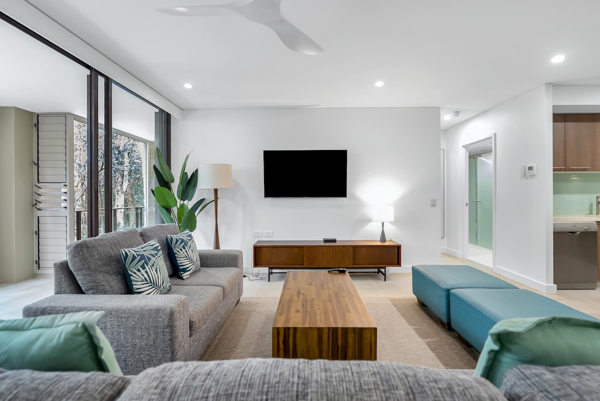 Welcome to The Green Place, a spacious 2-bedroom apartment in tropical Far North Queensland. Inspired by jungle surroundings, our unique and luxurious holiday apartment transports you to the tropics. *Free WiFi & Parking *Flexible Bedding *Fully Stocked: Essentials, extra towels, laundry supplies *Workout space w/ pedestal bike Located in the Lakes Resort, with access to 4 pools and treetop views from the third floor (stairs only). Plus we're only 10 minutes from Cairns CBD and the airport.