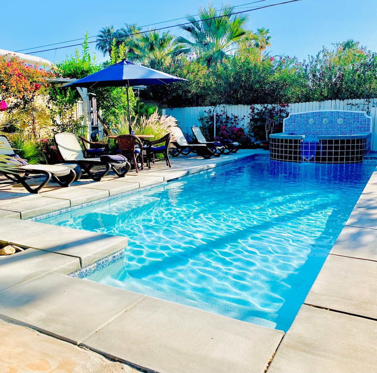 Quiet retreat in Palm Desert 5 min from El Paseo shops and dining, convenient to Palm Springs and Indian Wells. Updated suite with 1 bedroom, bath and living room/kitchenette. Private backyard with outdoor kitchen stove, sink and BBQ. Pool and hot tub are for your exclusive use. Safe walkable neighborhood. Close to best Coachella Valley golf and tennis. Primary renter must be 25 yrs old and provide a gov. I.D. per STR rules.Self check in available after 6pm. Dog friendly, 420 and gay friendly.