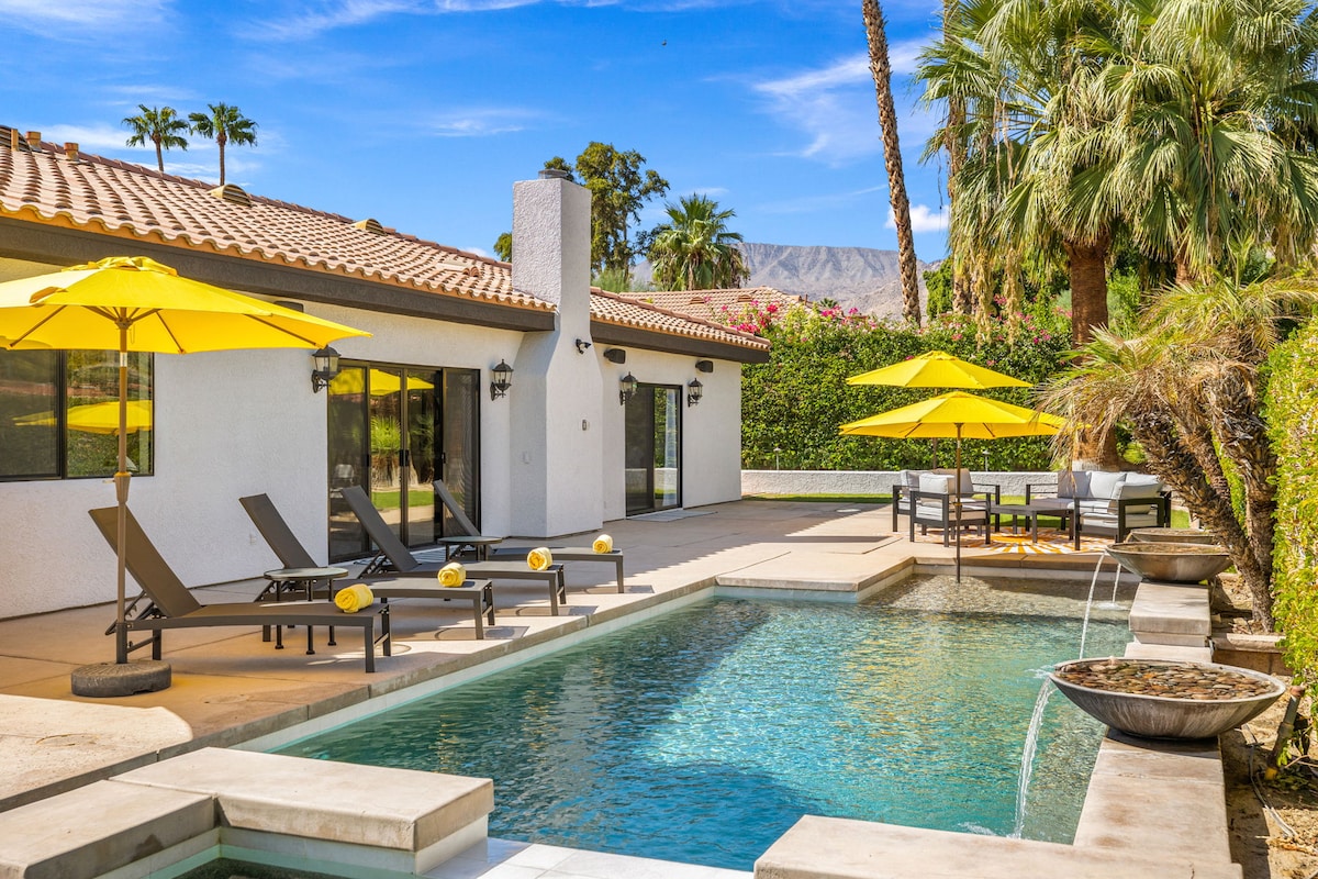 棕榈沙漠高尔夫球场景观房源、泳池和El Paseo