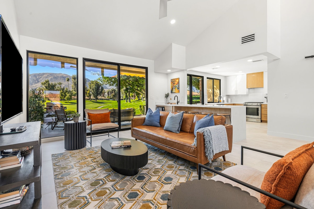 100% updated with new everything! The spacious bedroom has a king size bed; there’s a pull out sleeper chair in the living room; and the kitchen is fully equipped! The two bathrooms each have walk-in showers, and the bedroom and living room have smart TVs. The patio has a BBQ and the clubhouse has a full menu and bar. The pool/spa are less than a minute walk away, and the 2 car garage has a washer/dryer so you can keep your car and clothes clean. All you need to do is relax and have fun!