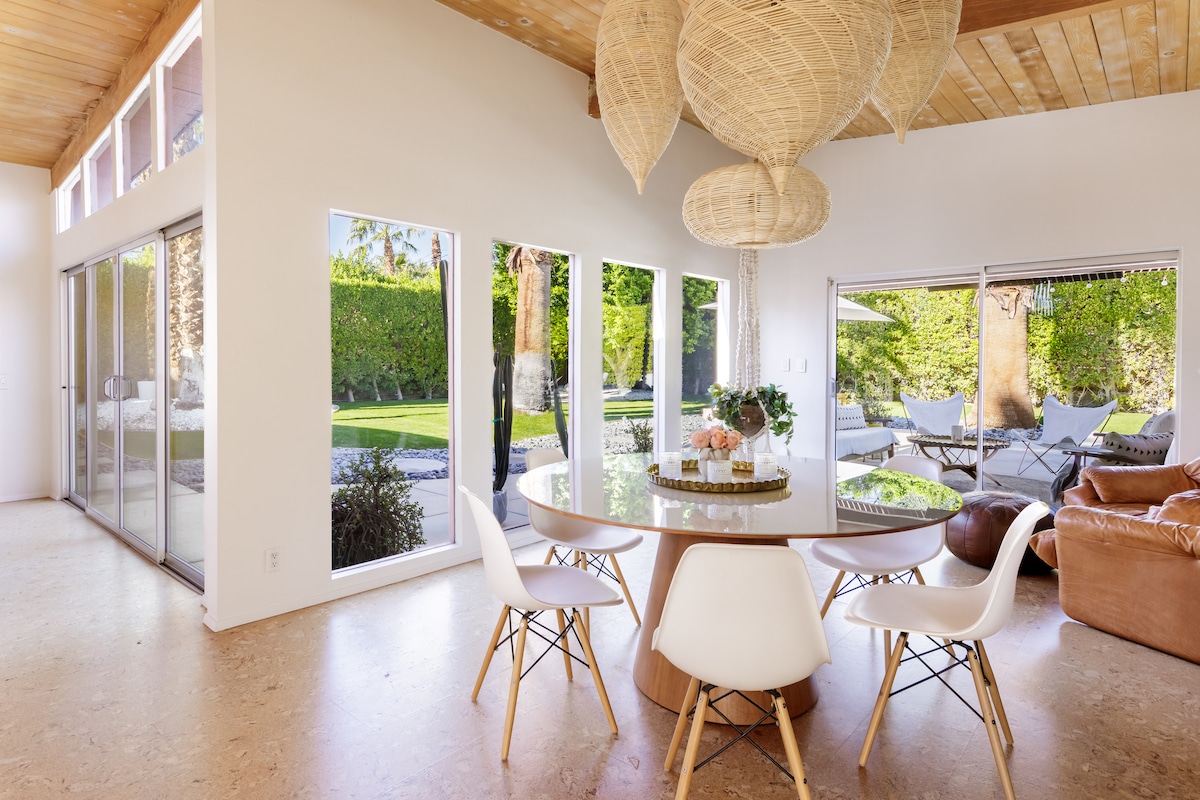 The bright & spacious post-and-beam home is part of the historic Ocotillo Lodge, as seen on HBO’s WINNING TIME and featured in Palm Springs’ world-renown Modernism Week. Proudly featured on design blogs APARTMENT THERAPY & ATOMIC RANCH, and tucked below the majestic San Jacinto mountains, Bungalow M blends modern amenities with mid-century style. The large heated pool, 2 spas, & location—500ft from Ace Hotel & close to downtown—make Bungalow M an oasis in the desert. PS#002796