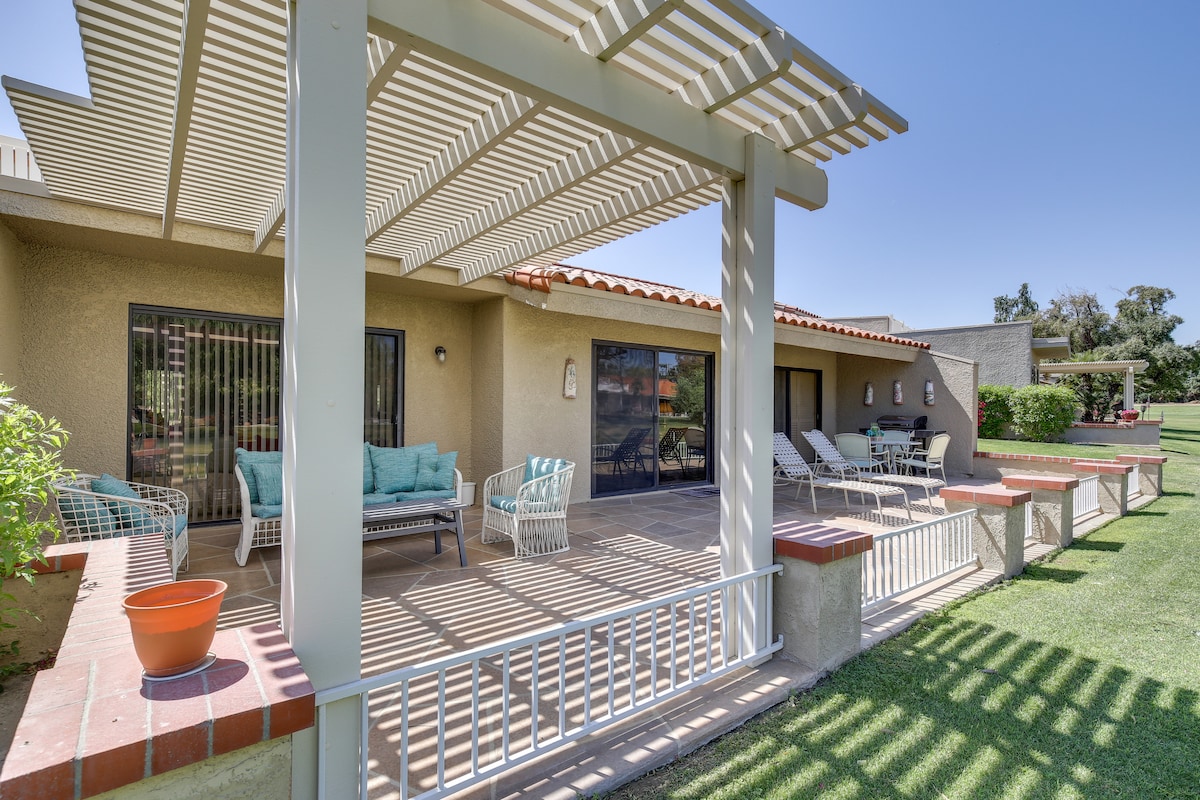 Welcome to your ideal country-club retreat. - Professionally designed home with modern yet cozy touches - Full access to 2 bedrooms, 2 bathrooms, and outdoor patio - Shared pool and hot tub with stunning desert views - Fully furnished with Smart TVs and high-speed WiFi - Equipped kitchen with essential appliances and utensils - Initial supply of household items provided - Quick access to Cathedral City’s resorts, dining, and shopping CODE-STVR-004194-2024