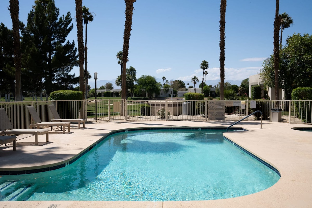 高尔夫球场景观和泳池通道:棕榈沙漠公寓