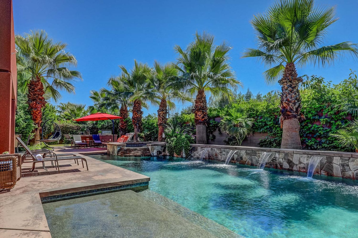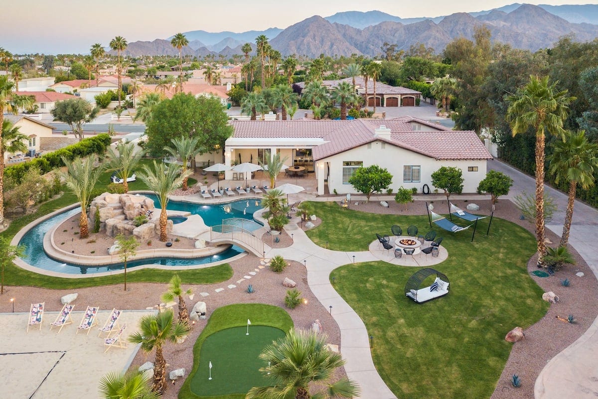 Indio 是 Coachella 音乐节的发源地,它被称为节庆之城。无论您在一年中何时来访,都能找到值得庆祝的事物。狂欢到精疲力尽后,就来到我们的 Indio 度假屋,这里是您参加派对后理想的休息天堂。舒适的蓝色泳池,四周环绕着躺椅和必备的遮阳伞,热水浴缸抚慰着疲惫的双腿,最后静卧于超级柔软的大床一圆好梦。