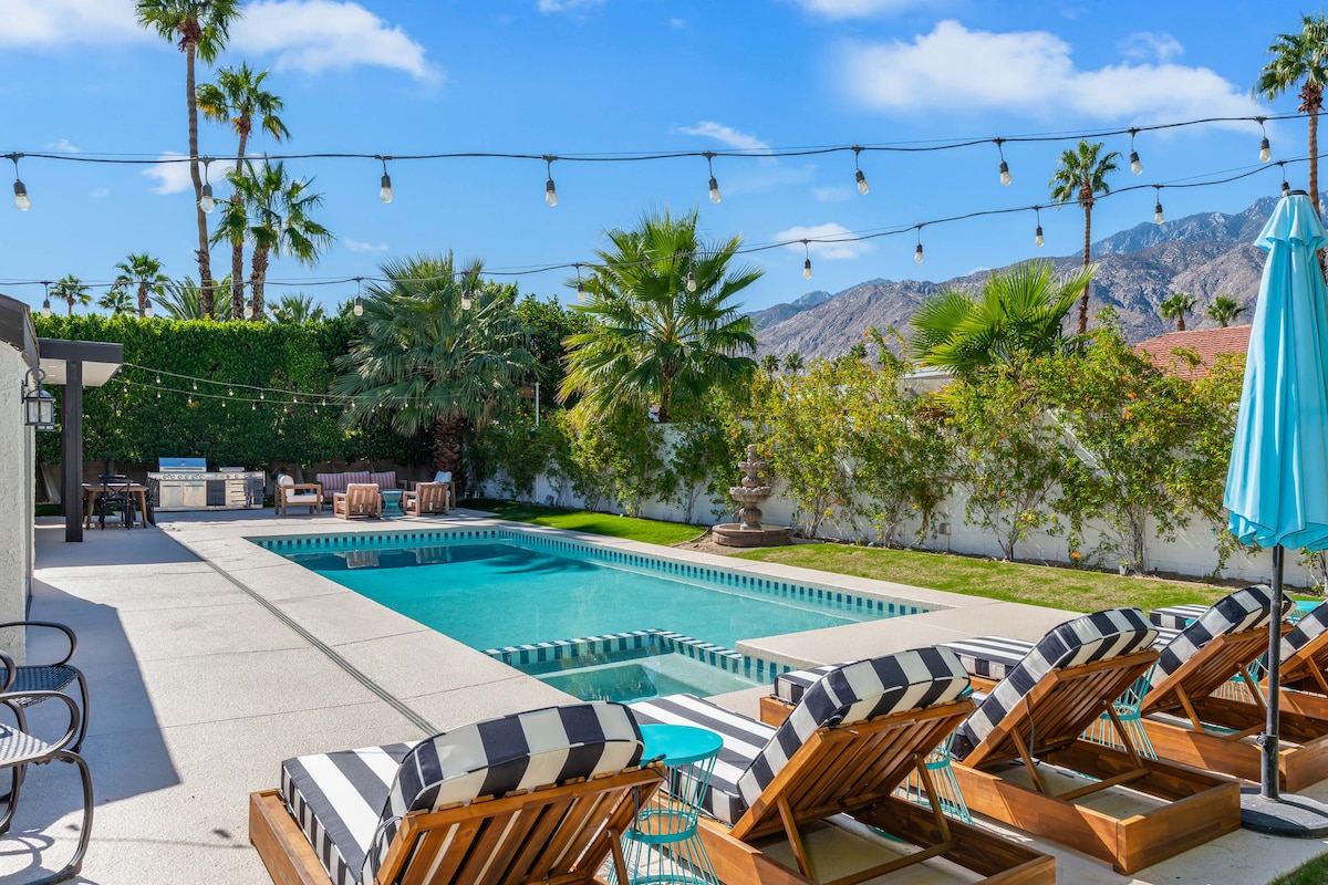 Before booking: Please indicate the number of guests and review fees and listing details. City limits 8 adults. Experience Palm Springs where nature takes center stage and welcomes you with breathtaking openness from the moment you arrive. The majestic San Jacinto Mountain stands in full view, framed by trees, soaring palms, and quiet fairways that stretch like a vast, tranquil meadow and neighboring homes fade into the distance, barely noticeable in this rare and serene setting. City ID # 4390